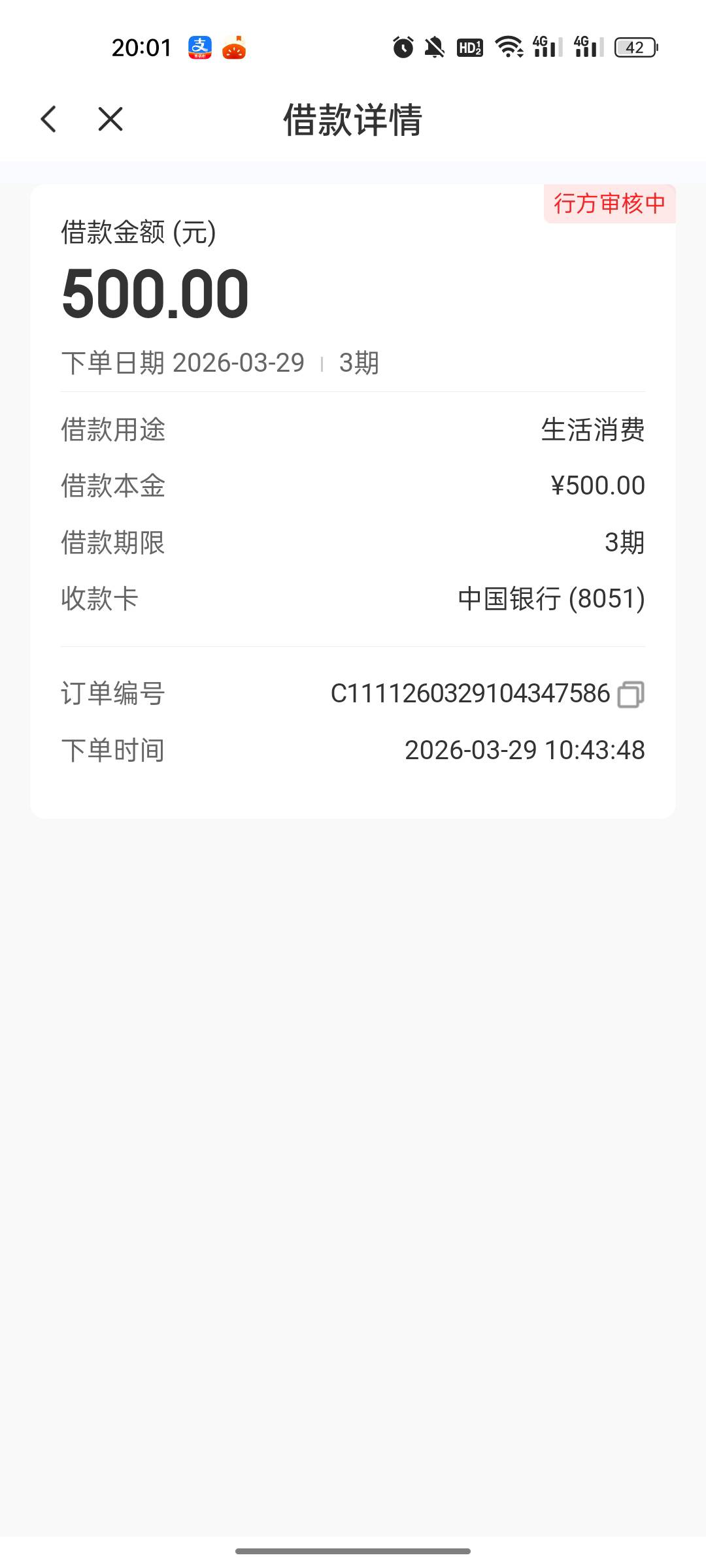 我也是29申请的第三笔 行方审核中
