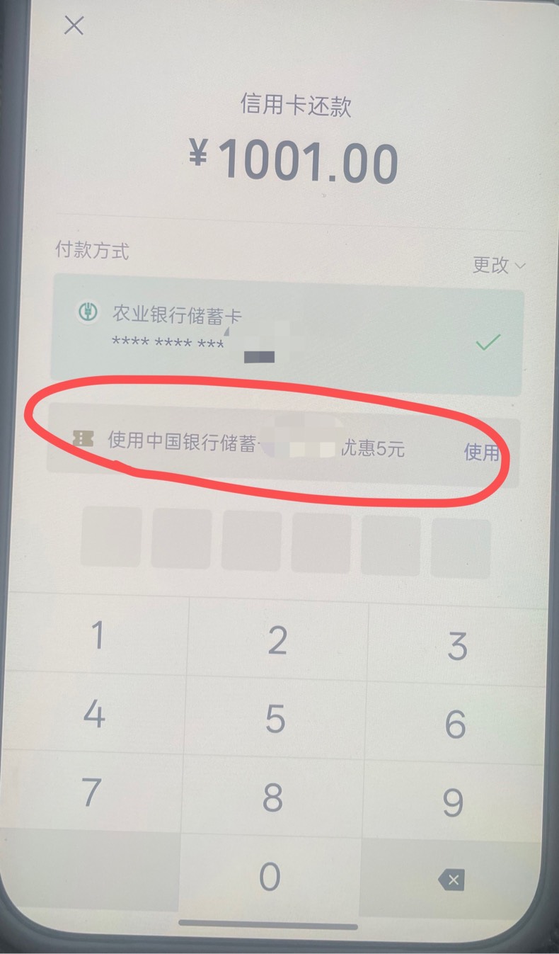 微信还款用 陕西中行1000-5