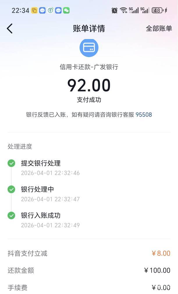 抖音虚拟定成都  邮政储蓄卡信用卡还款100-8  2次