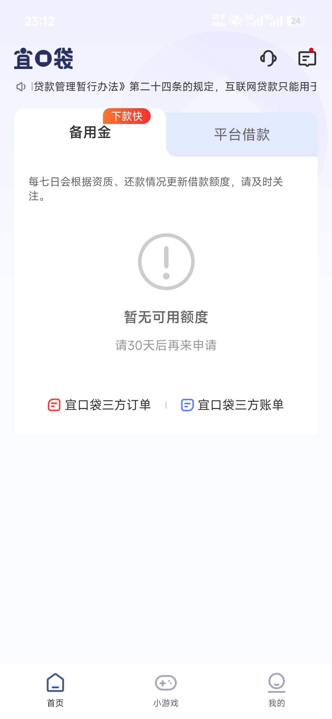 宜口袋备用金界面无额度,本体自己还完了再借提示近期有失败不让借,3号橙心袋jdd都是还款日还是准备逾期…