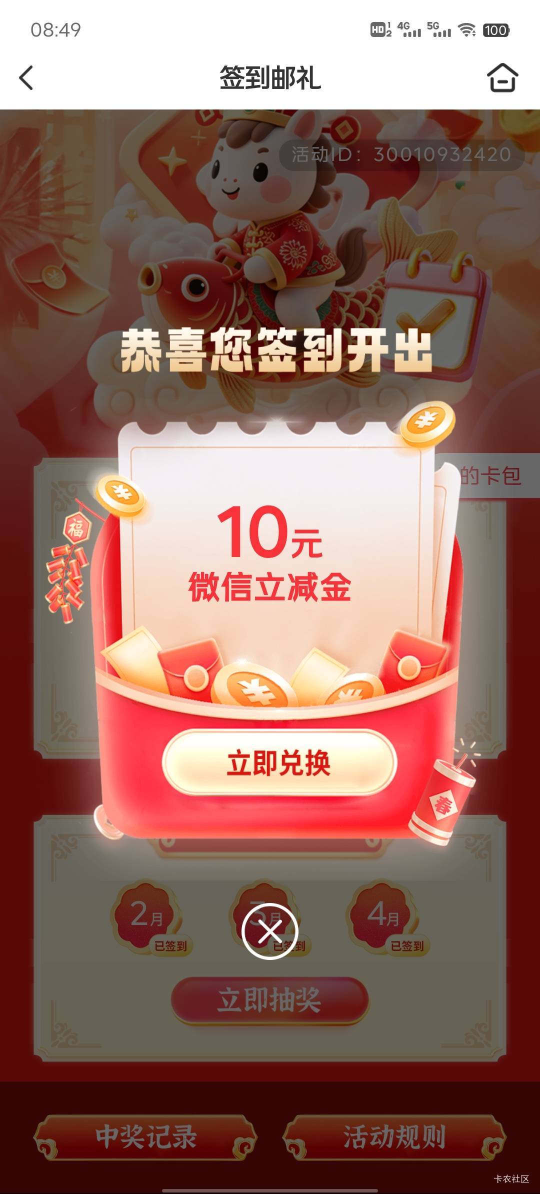邮储天津签到邮礼招财进宝开红包活动