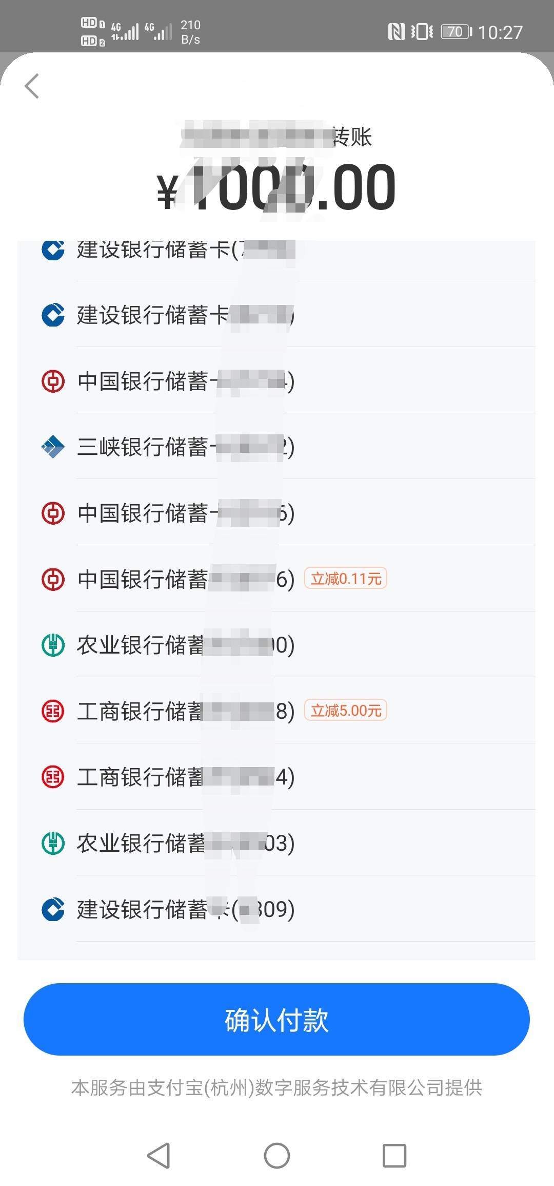 支付宝转账工行长沙1000-5