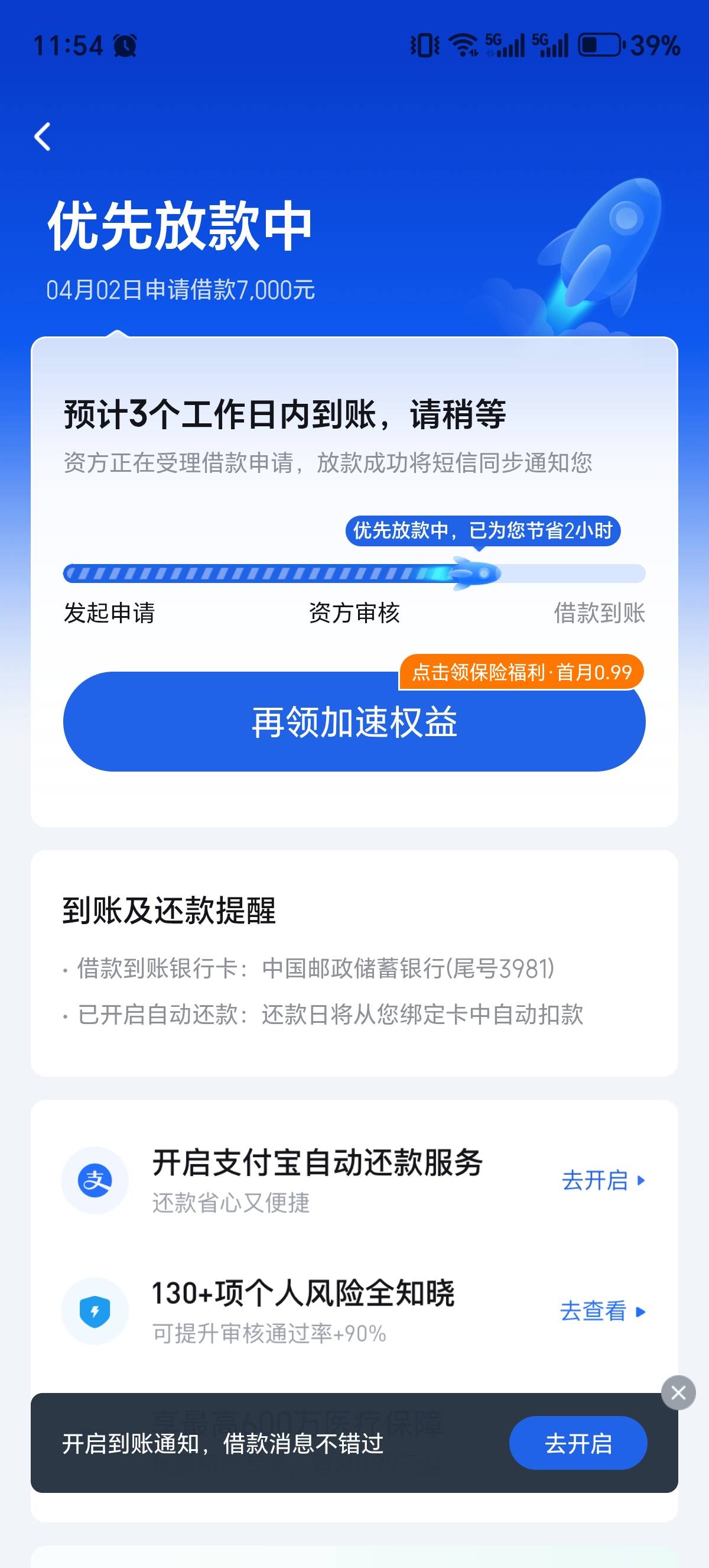昨天早上申请的