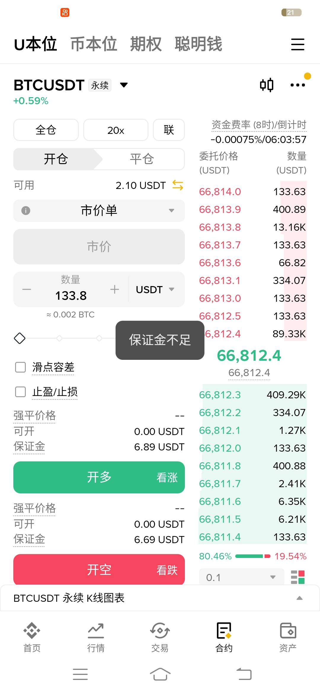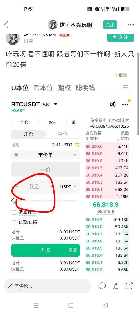 CKOI 发表于 2026-04-03 17:54 你20倍多买几u开单,你新人是不是200u,这里够100以上开单平掉就行了,