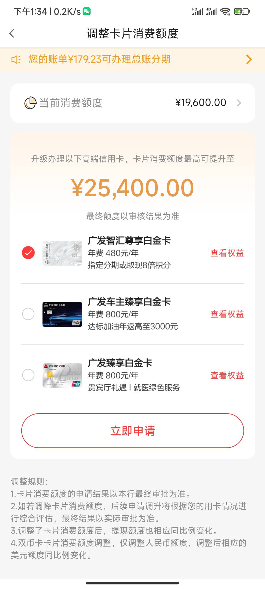 广发银行提升额度了,本来点进去还显示要升级卡片提升额度,还好论坛有经历过的给我说
