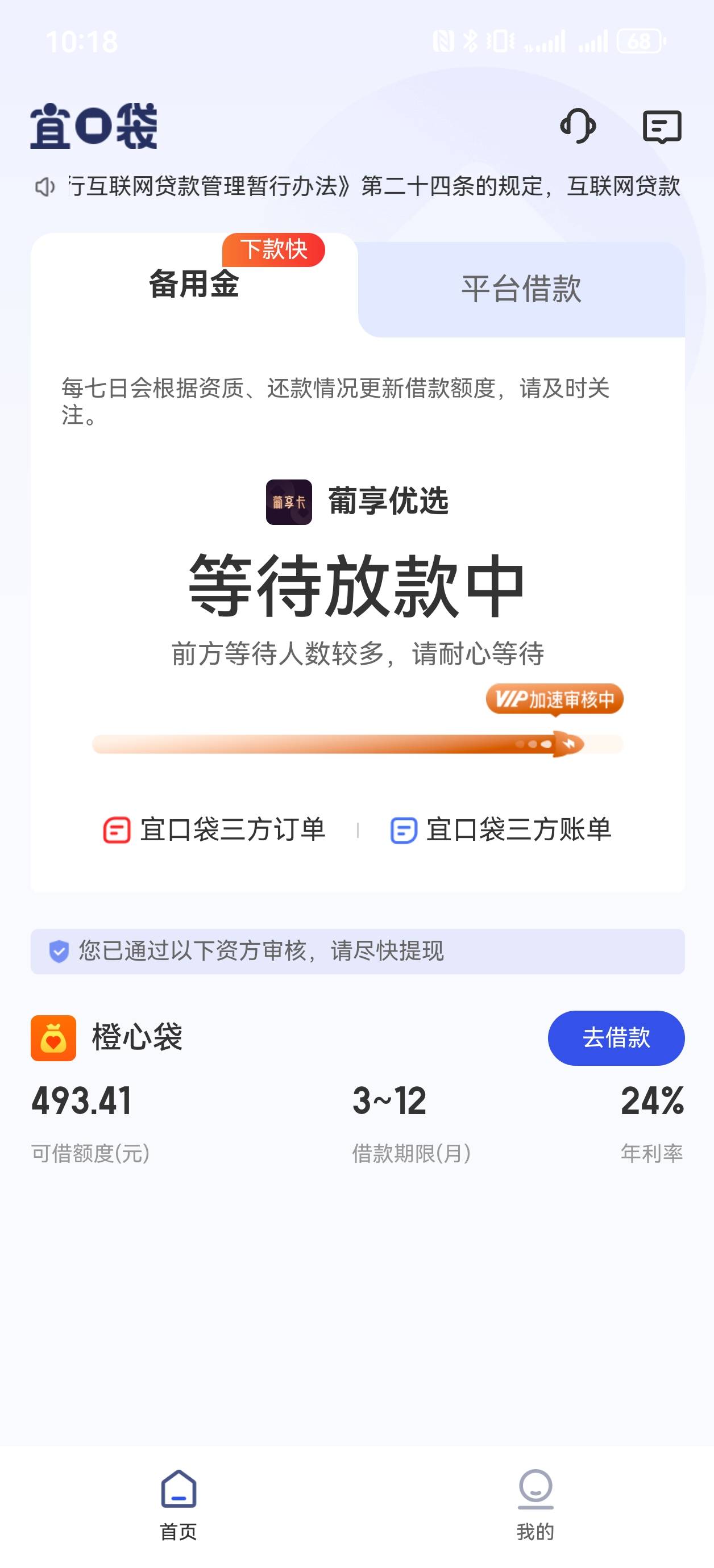 我30号申请的葡享3000调整变500,到现在还是显示放款中也点了先用后付开会员也不下。