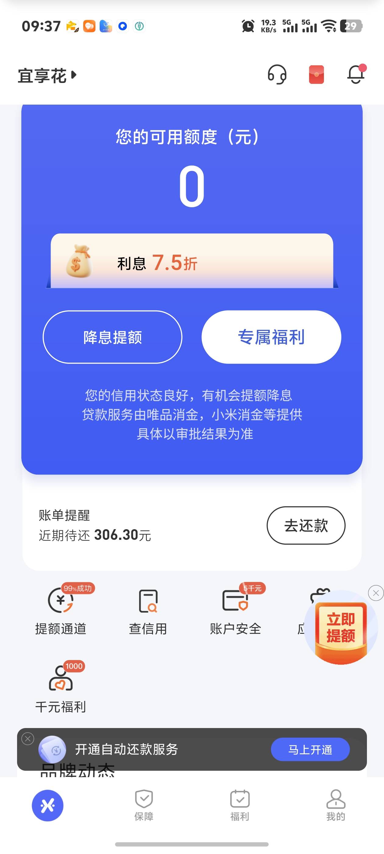 宜享花这个提升额度有哪位老铁用了吗?能提升额度吗?要交199元,不知交了能否提升额