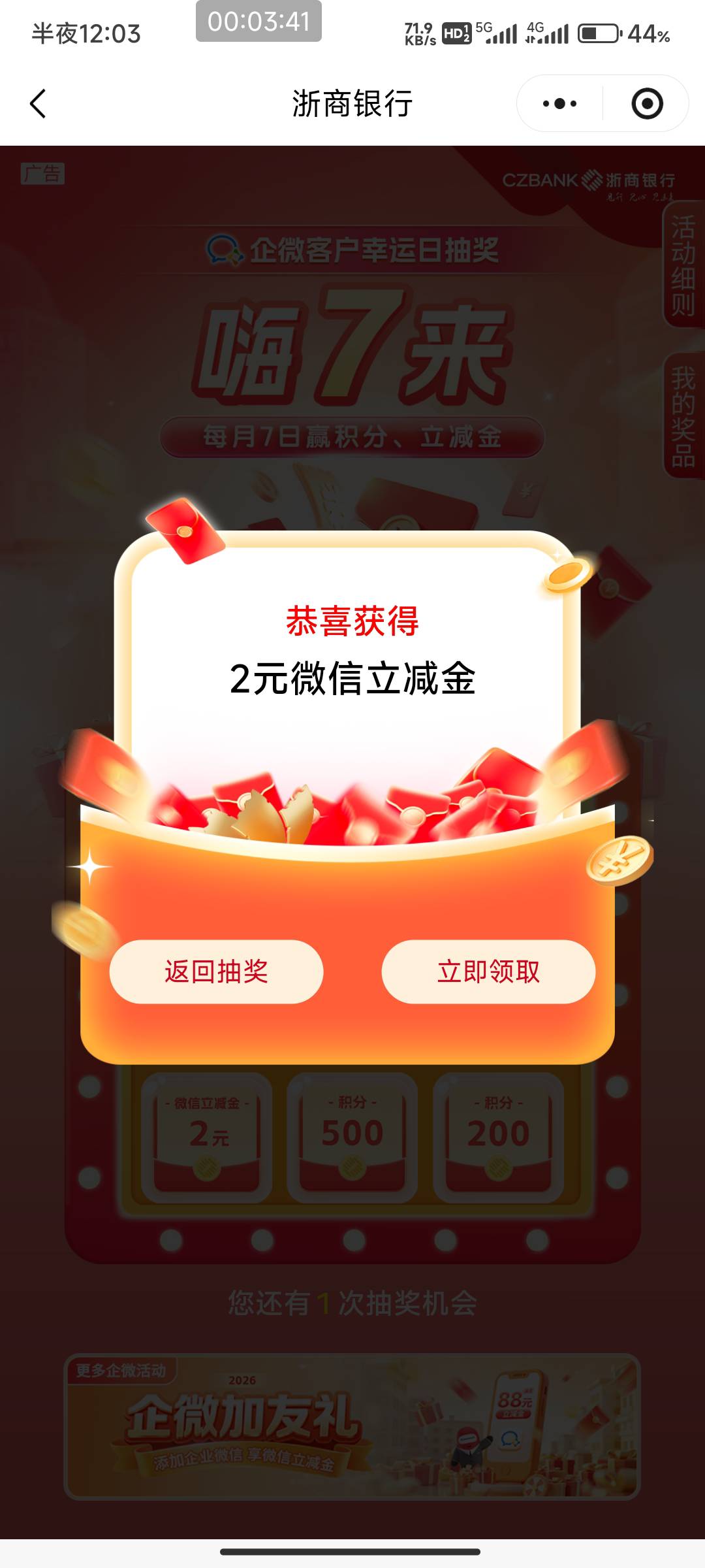 浙商银行嗨7来企微客户幸运日抽奖活动