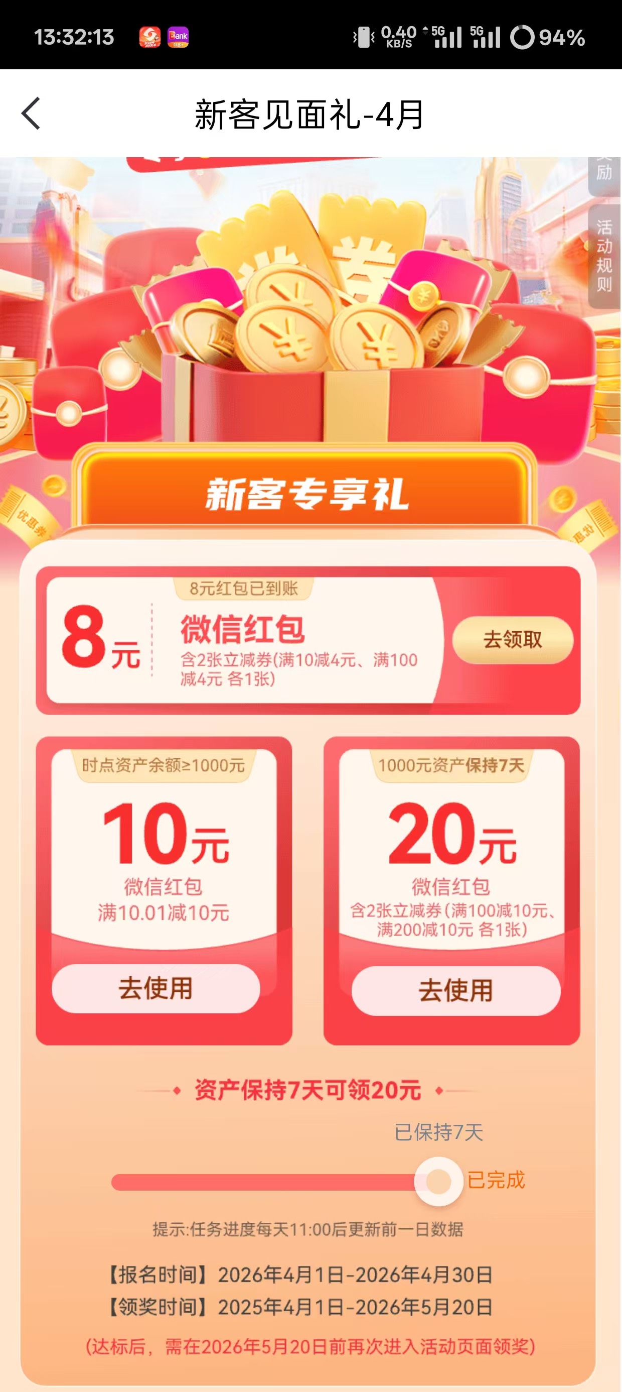 寂寞卡农开无主 发表于 2026-04-08 17:45 第一次新开卡都有这个活动