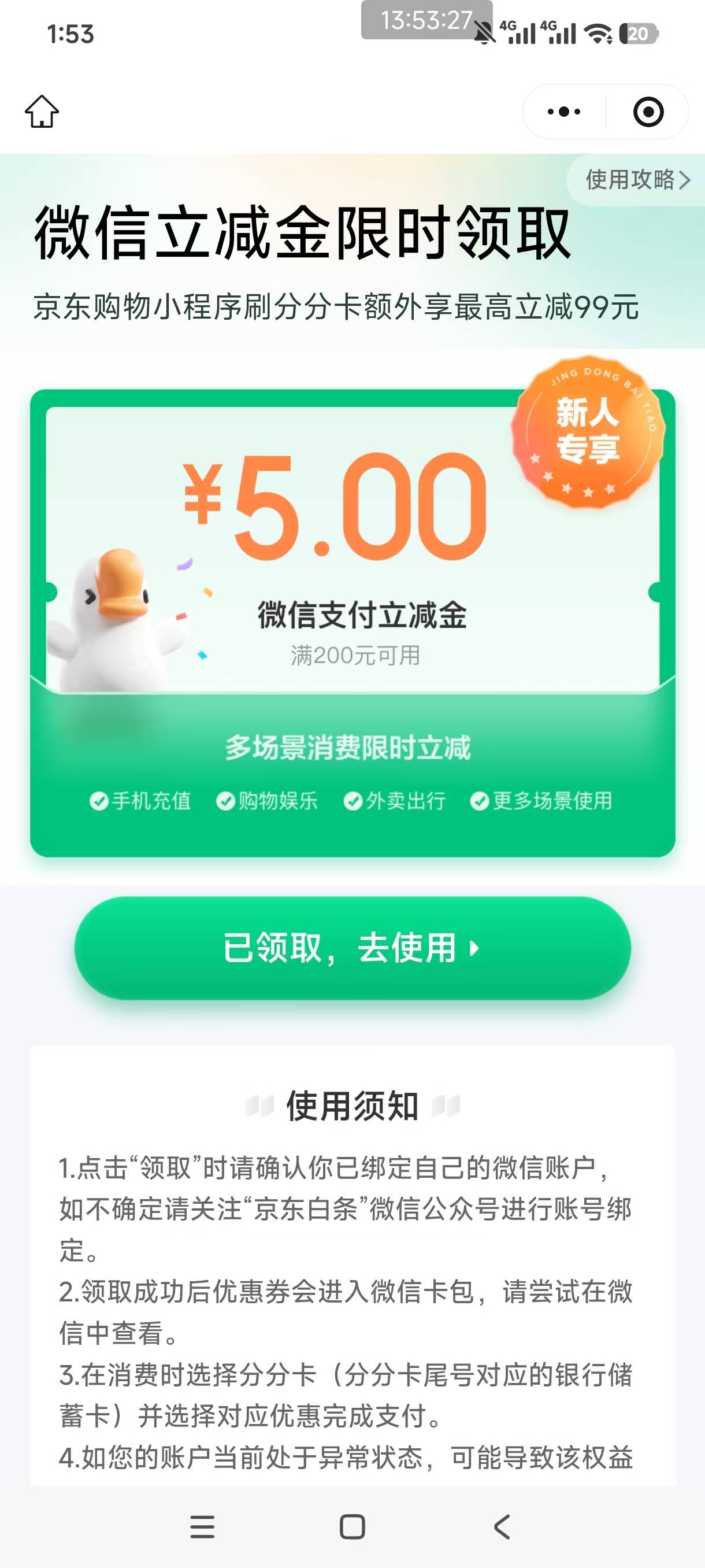 #小程序://京东白条分期/ao9bs7SVwuuewlr 不是新人,但是能领