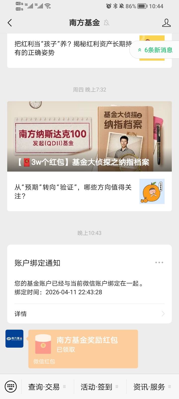 南方基金公众号首绑微信领红包活动