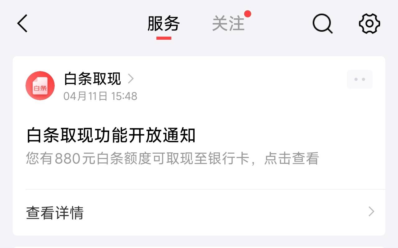 收到白条开通取现功能,先后下了800和6000,先是800用的白条额度,出来之后又看见能再