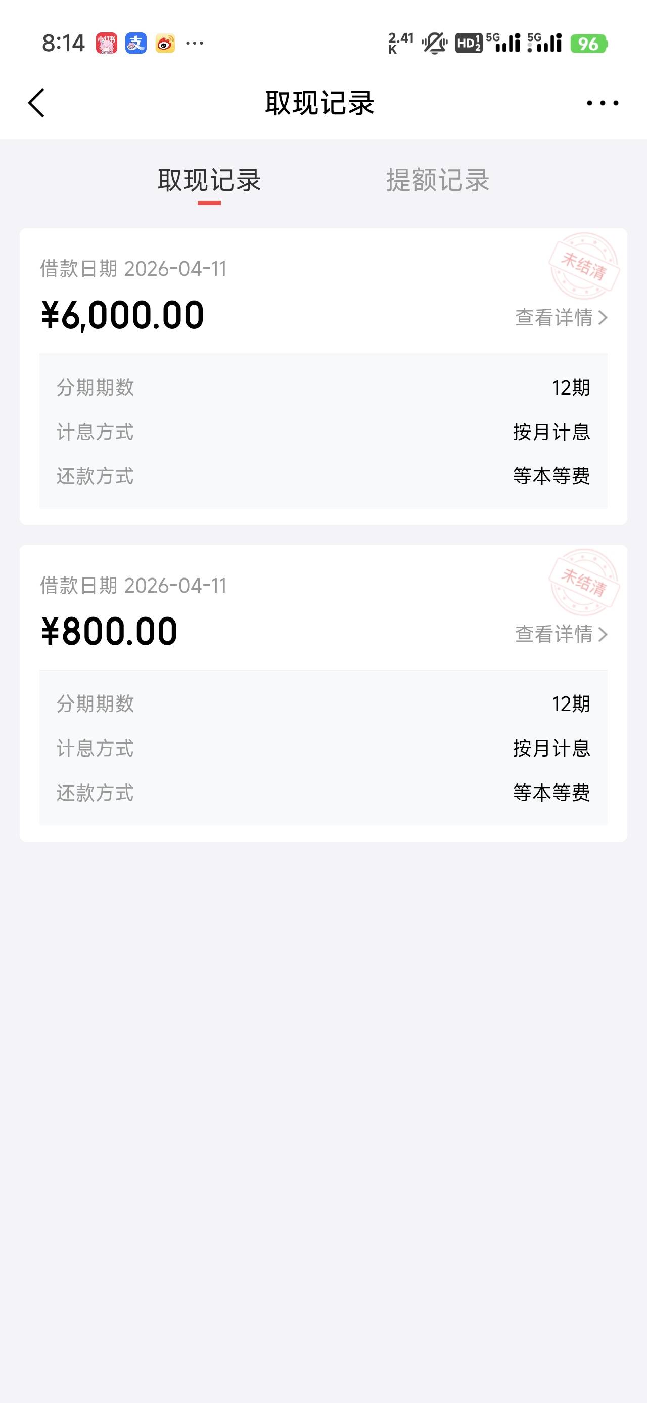 收到白条开通取现功能,先后下了800和6000,先是800用的白条额度,出来之后又看见能再取现6000@卡农土豆 @卡农阳阳
