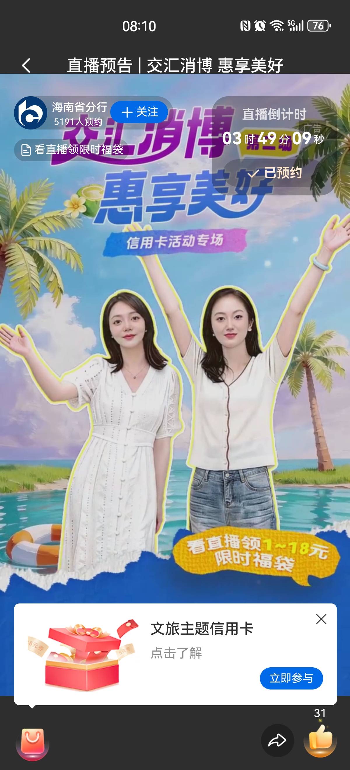 12点交通银行看直播领福袋  破零