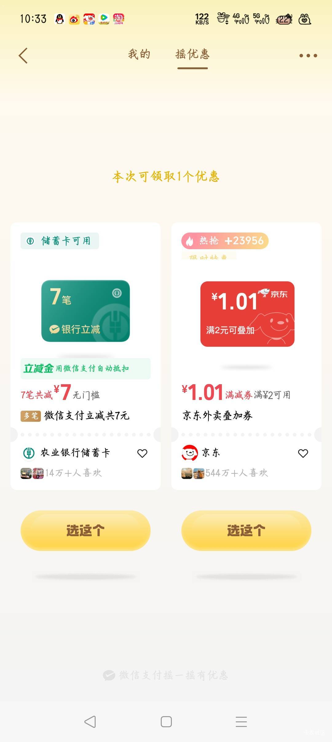 微信摇一摇农行微信支付多笔立减活动