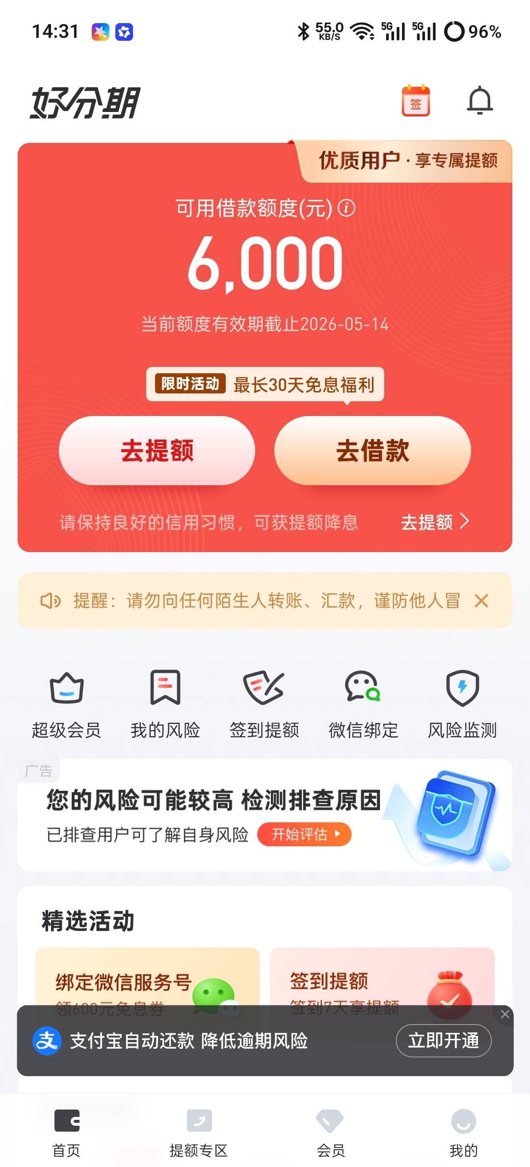 好分期六千额度 审核了几个小时给我打个电话问有没有被诈骗 我说没有然后给我拒了