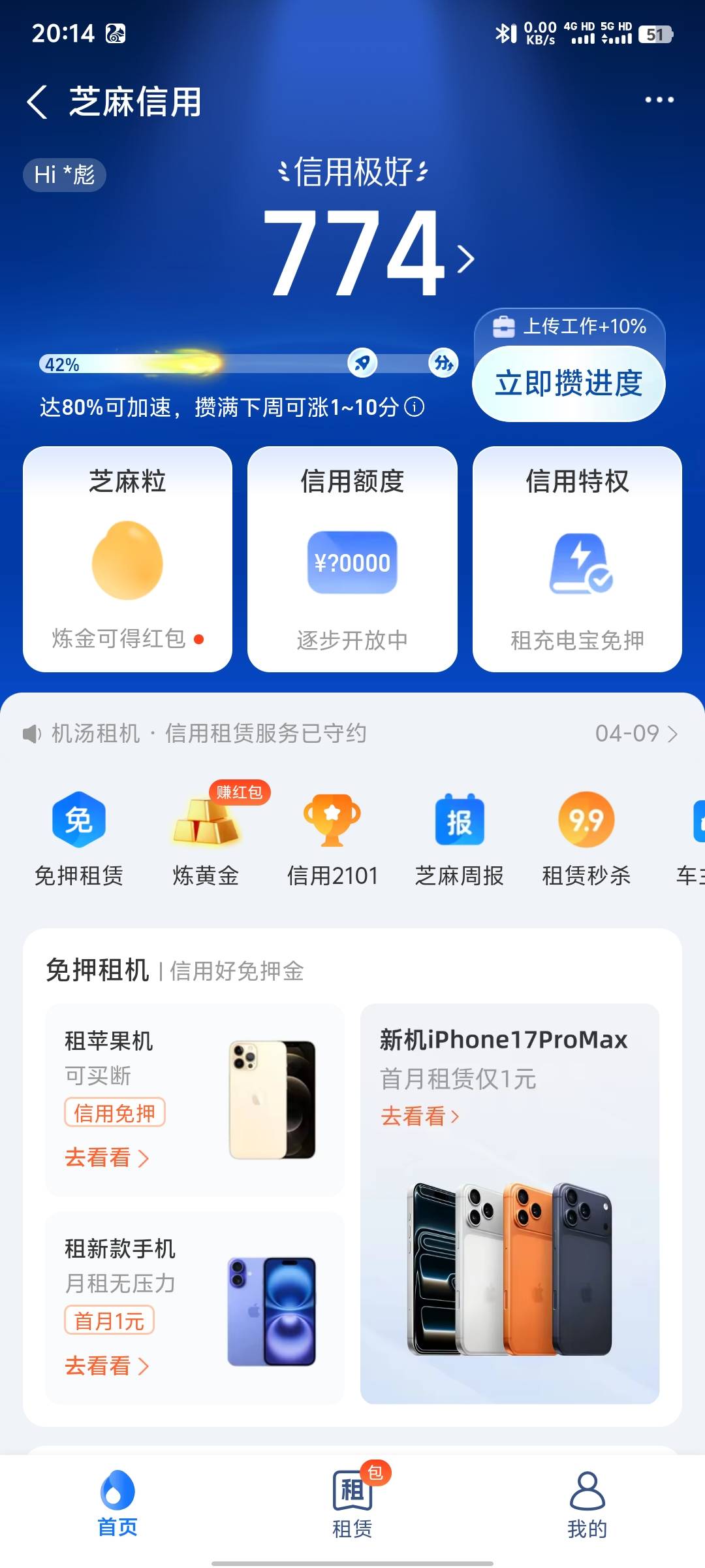 芝麻分早上看的是745分,晚上打卡看,怎么变成774了我翘,我还以为是我眼花或者是界面