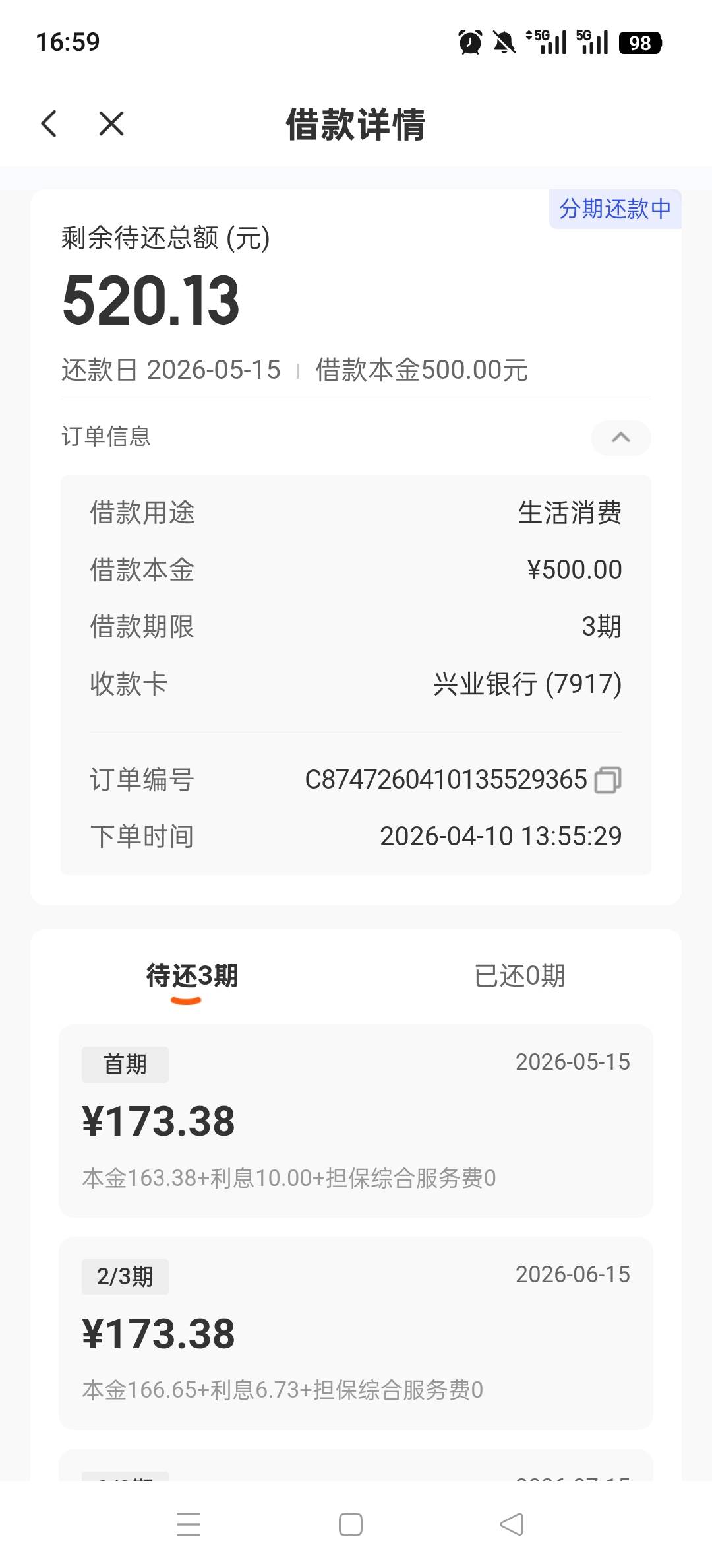 彩虹糖没有糖 发表于 2026-04-15 17:05 我的都逾期好几天了。.,上次也是5号到账700 也是等了四五天