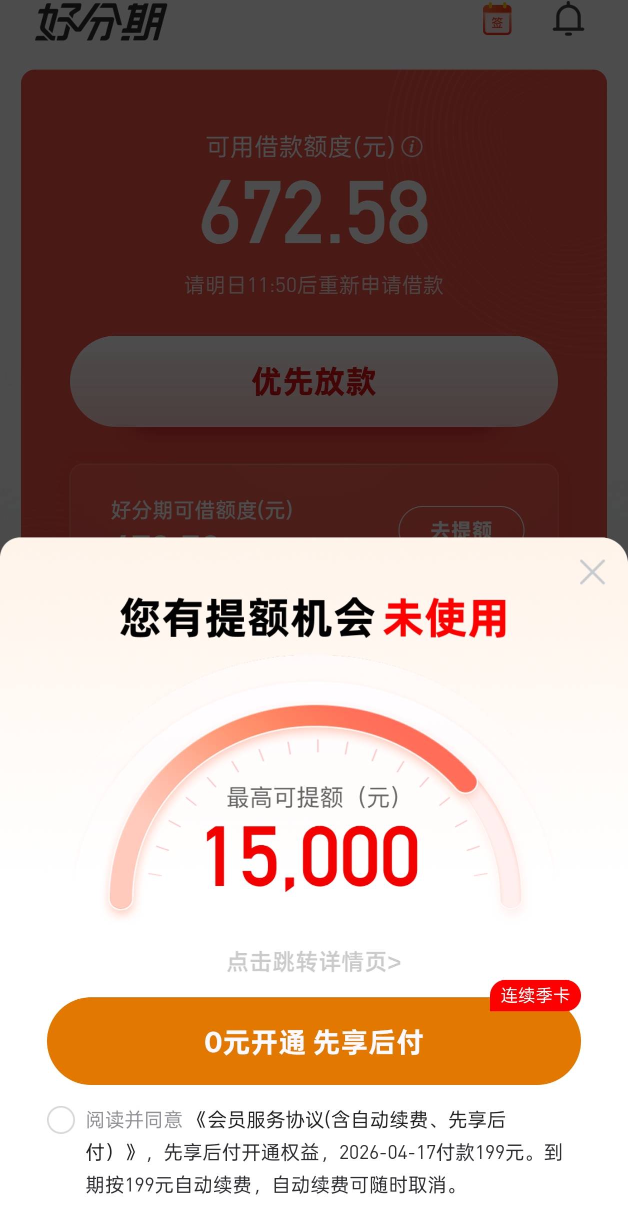 时光两次出500都是秒拒,好分期这个开通有没有用,感觉也不稳当了。哈哈哈,黑成碳了
