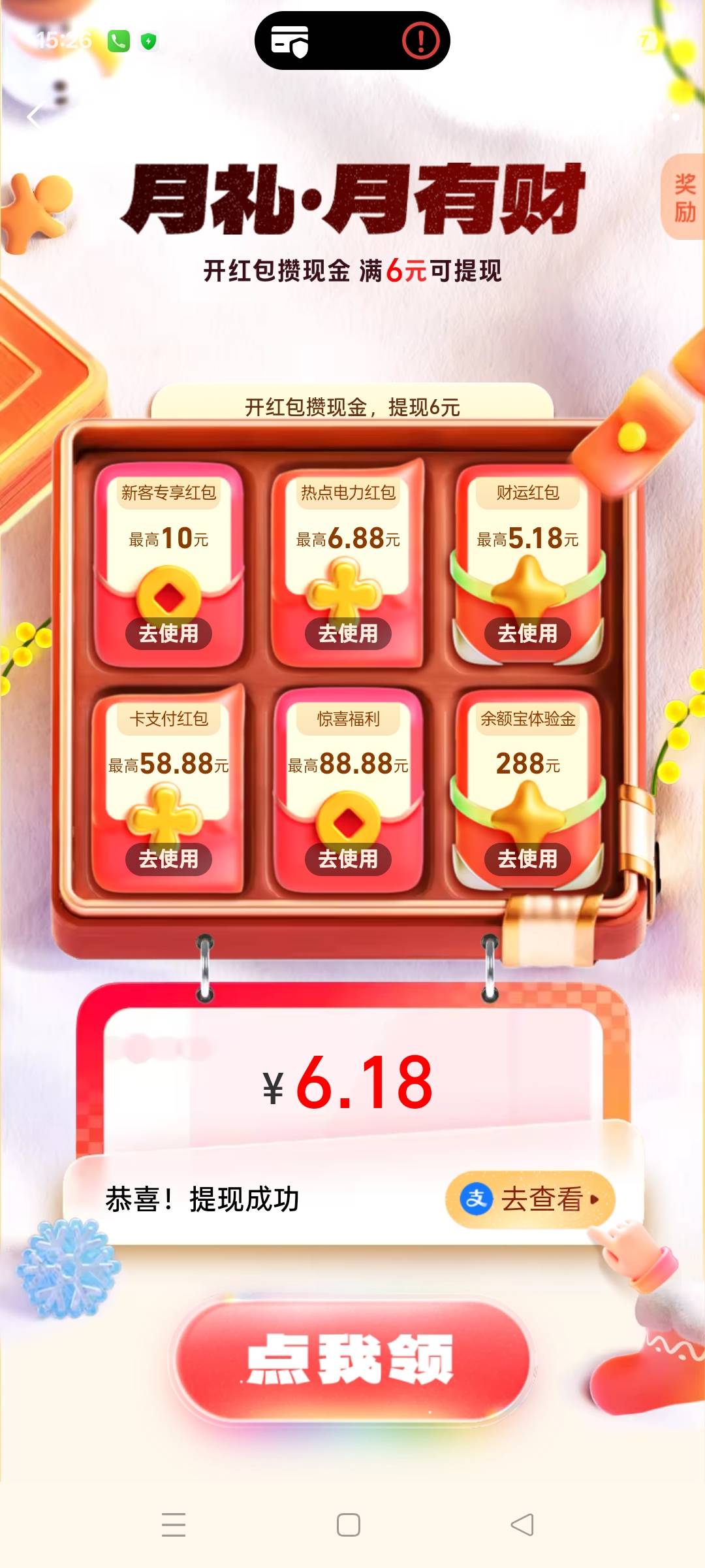 支付宝月礼月有财开红包攒现金提现活动