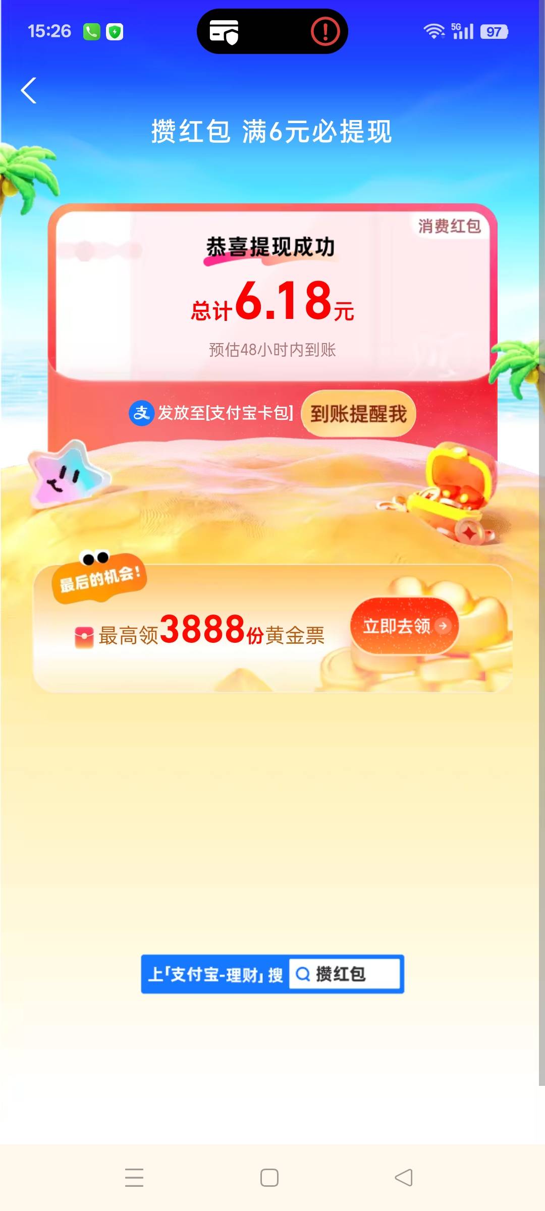 支付宝理财股票有弹窗,没做的去看看有没有 红包不秒到