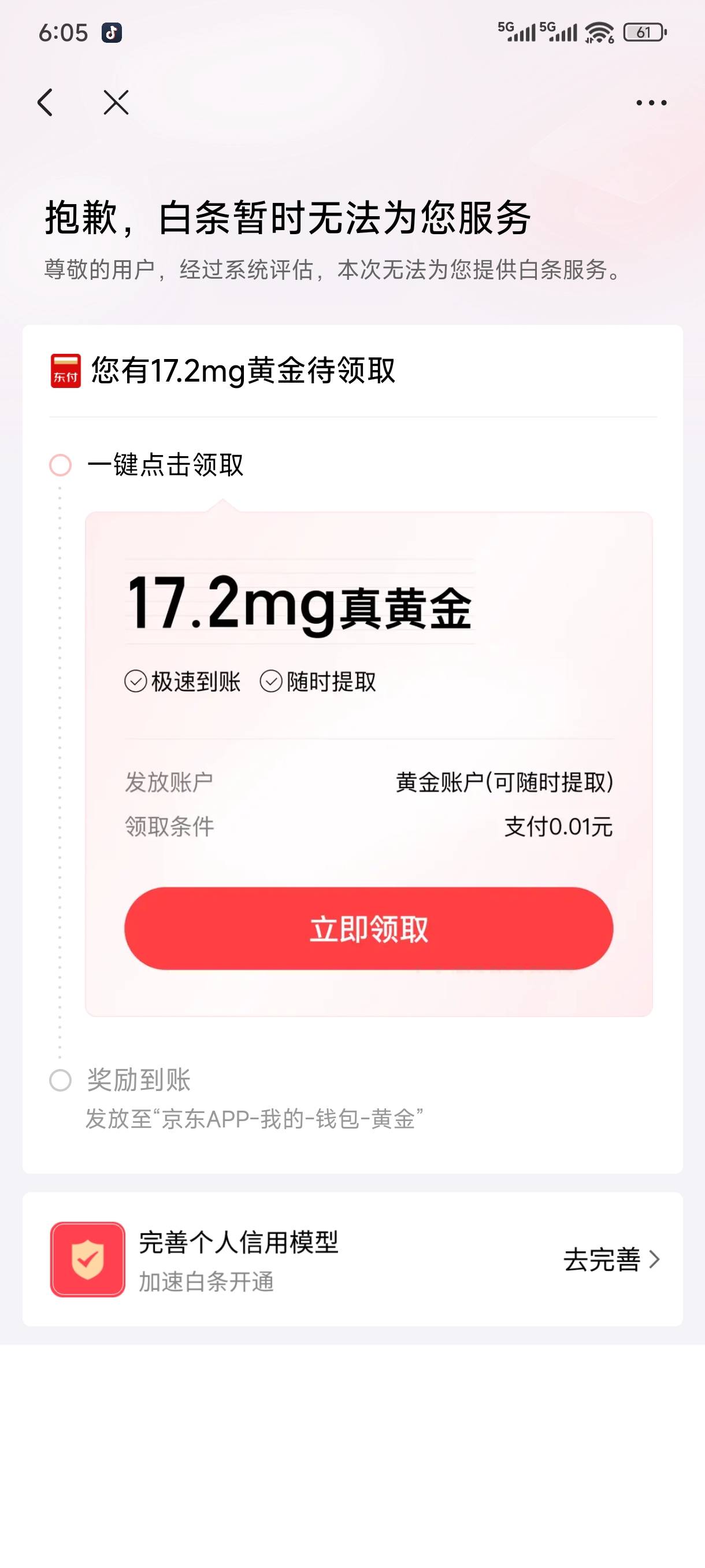 学你们的把用了很多年的京东账号注销了,换了个手机开通白条依然是不给,但是误打误撞下了京东金融,根据流程开通了小金库绑了卡,一共给了我32块钱,这算是小羊毛了吧,够吃一天饭了。。。