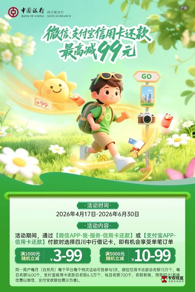 中行四川信用卡还款随机立减活动