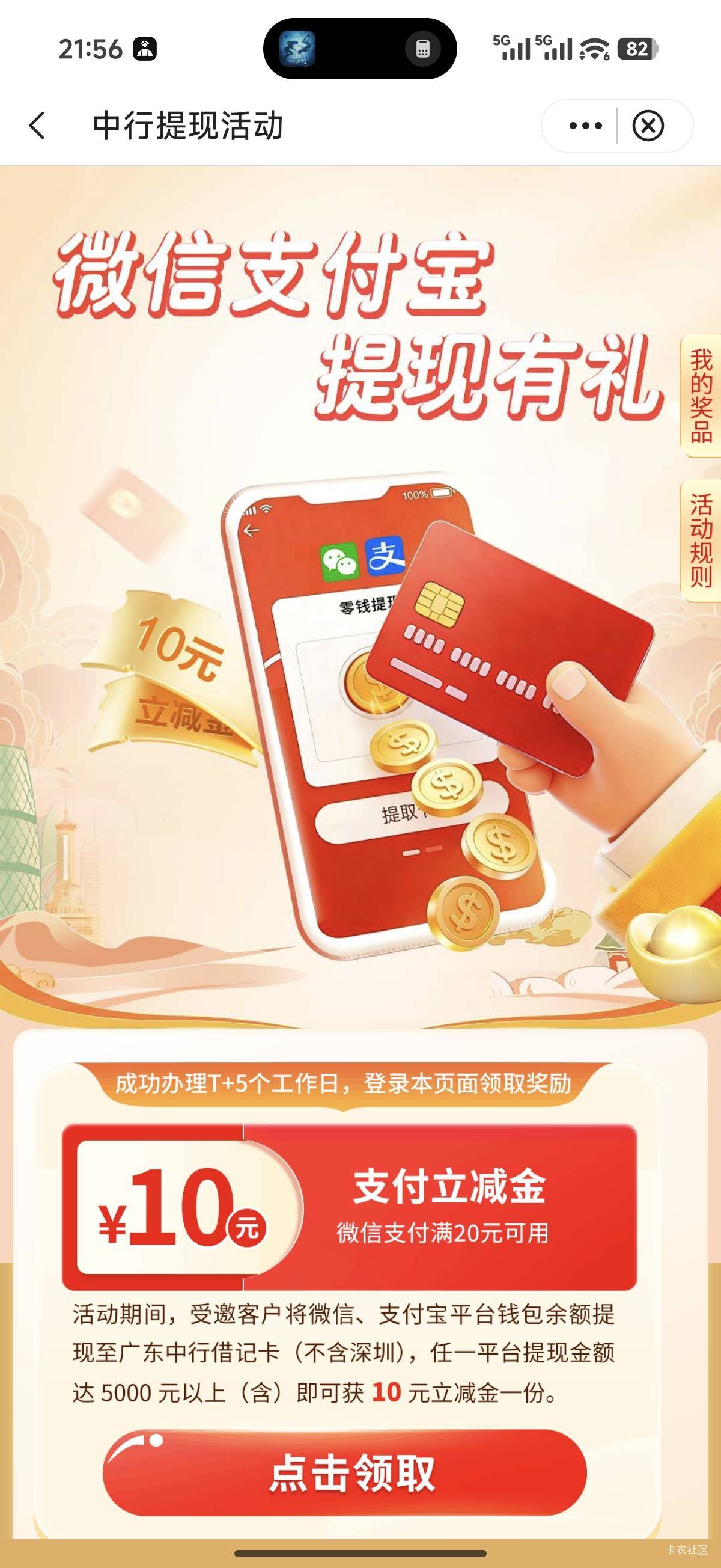 前面一直特邀,今天点进去居然可以领,广东中行城市服务里面的这个活动,老哥们可以去试一下