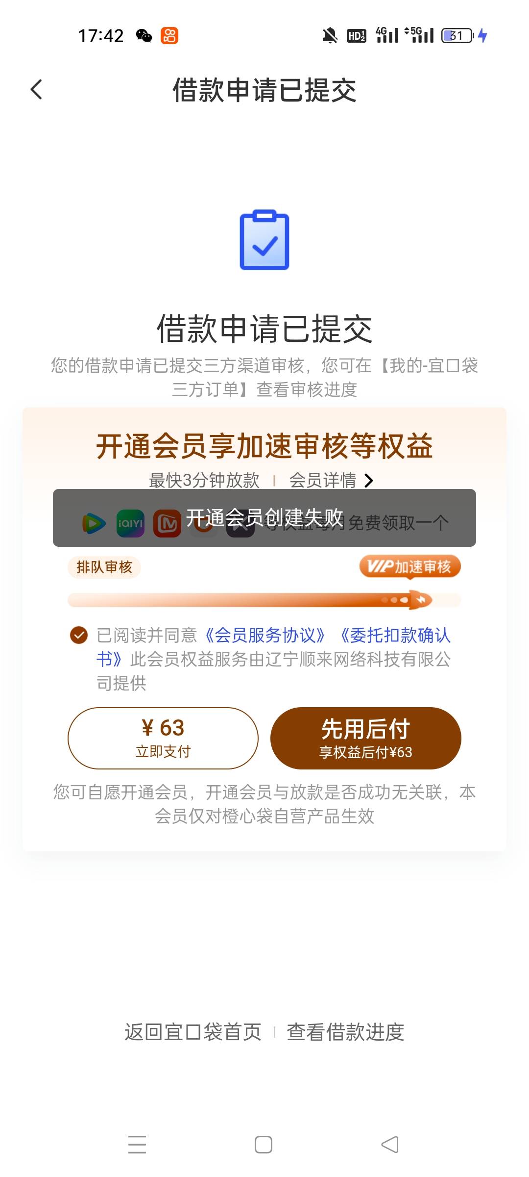 橙心袋30号还第一期,老铁们第二笔什么时候能申请,老是创建失败?