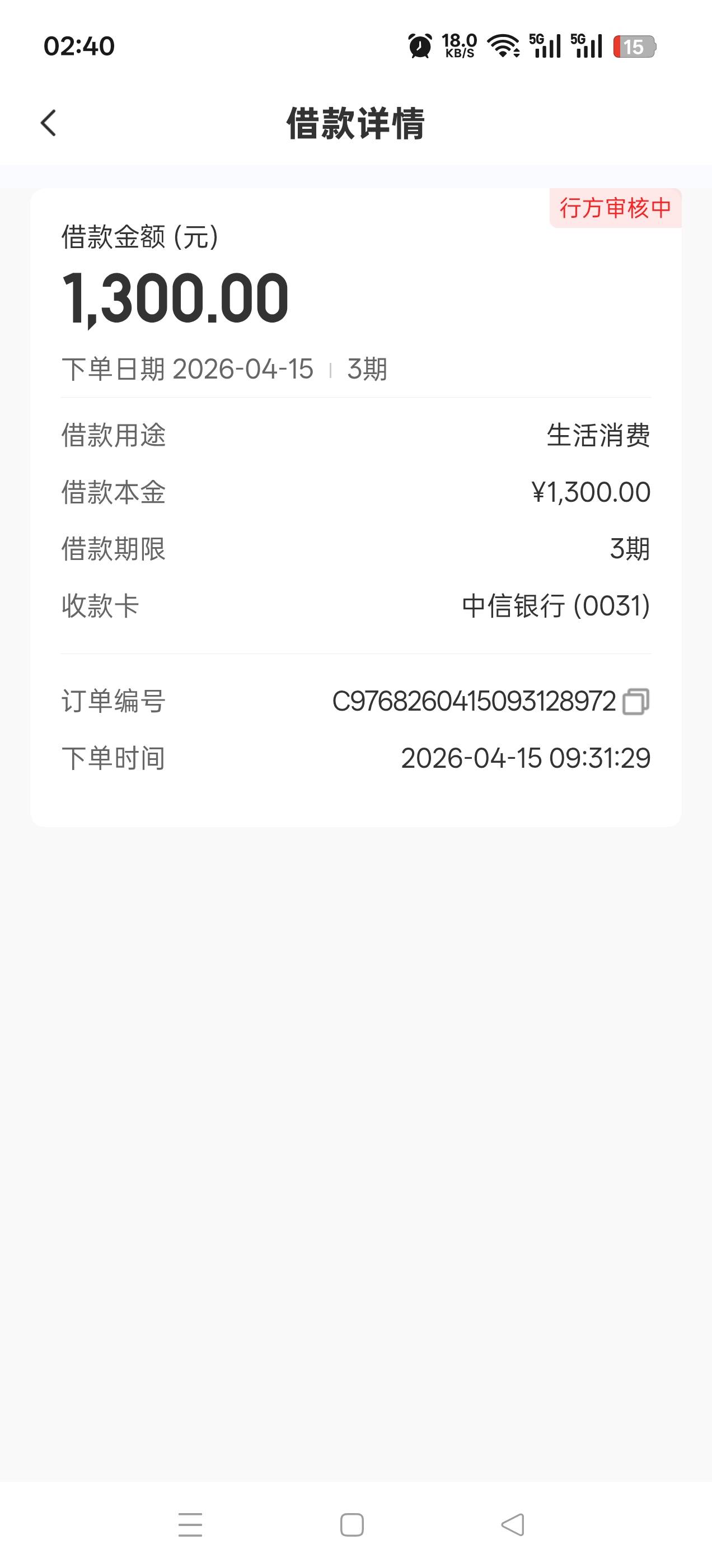 15号申请的放款失败了