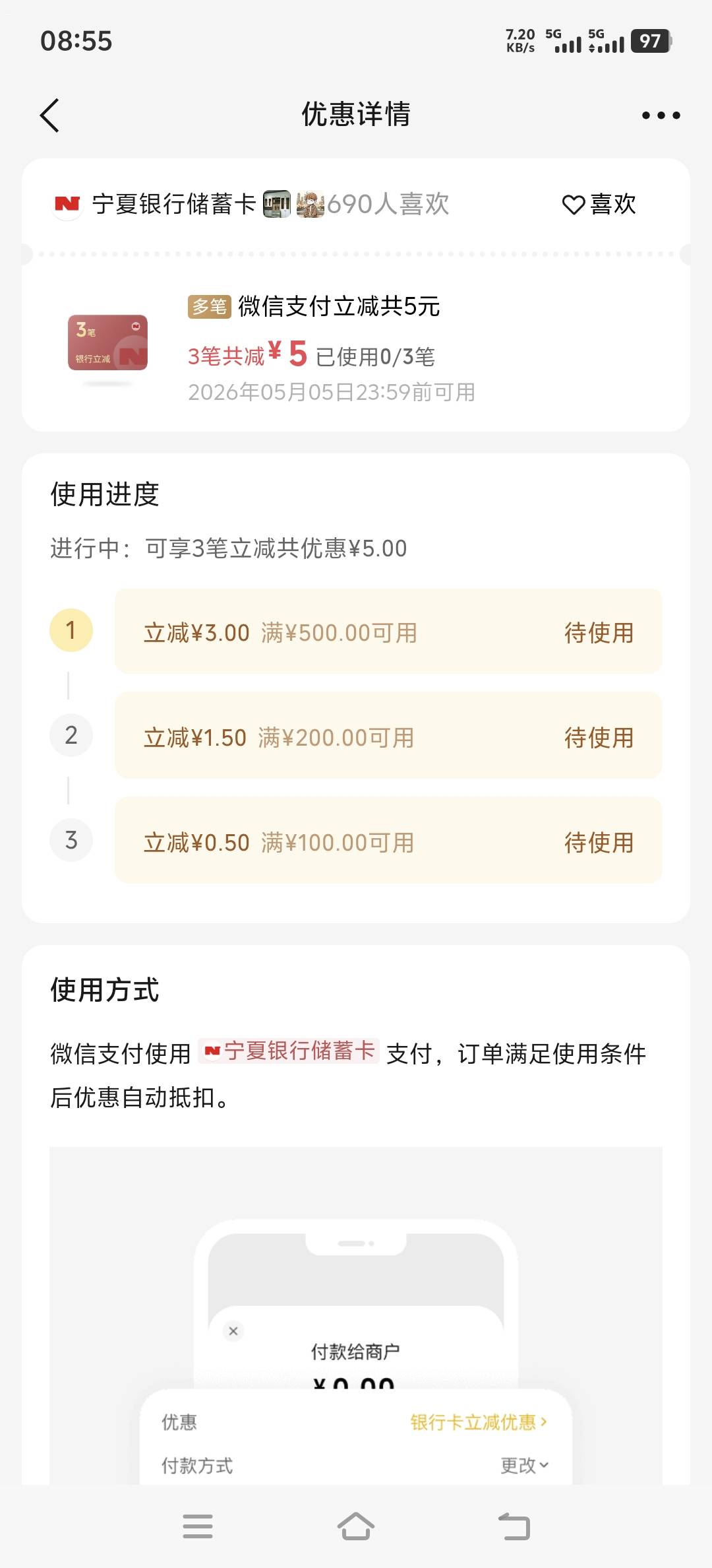 宁夏银行vx优惠支付3笔减5