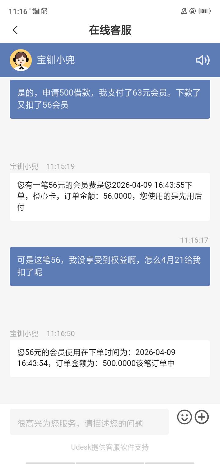 1.首先橙心贷app客服问会员费退费,开通七天不到的一般直接退了。