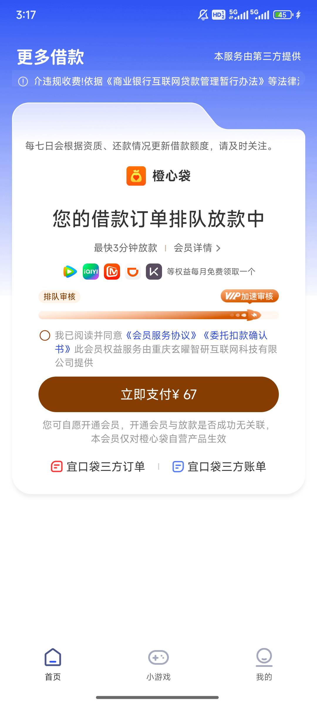 有没有老哥跟我一样的情况?早上看会员63下午点进去看变67了,人工打了两次电话喊我买会员说现在都是整点放款,买了整点就能下不下就会T费