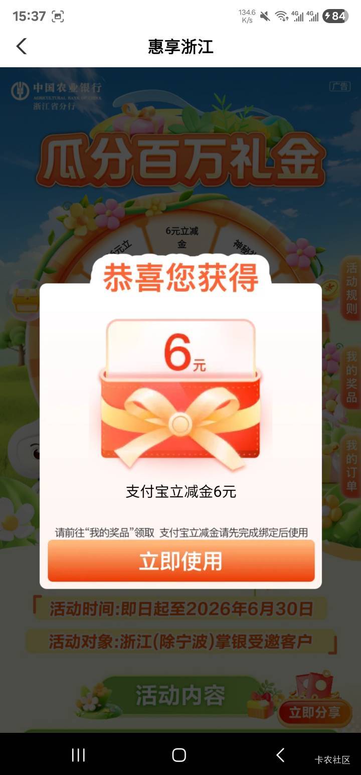 农行惠享浙江瓜分百万礼金