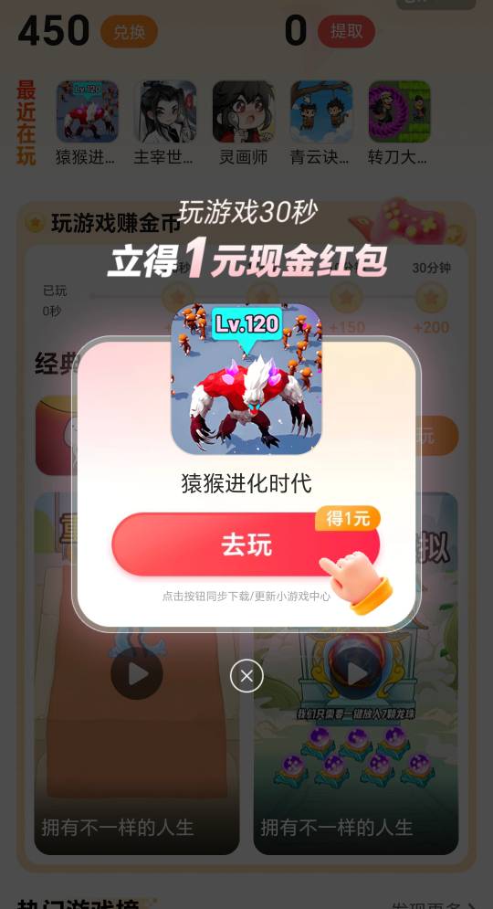 荣耀应用商店玩30秒立得1元现金红包活动