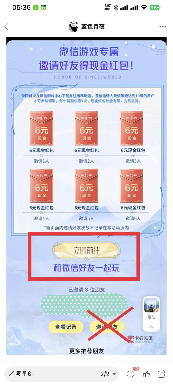 蓝色月夜 发表于 2026-04-22 05:38 红圈的立即前往进去才是拉人有红包的,下面那个叉邀请朋友没有用