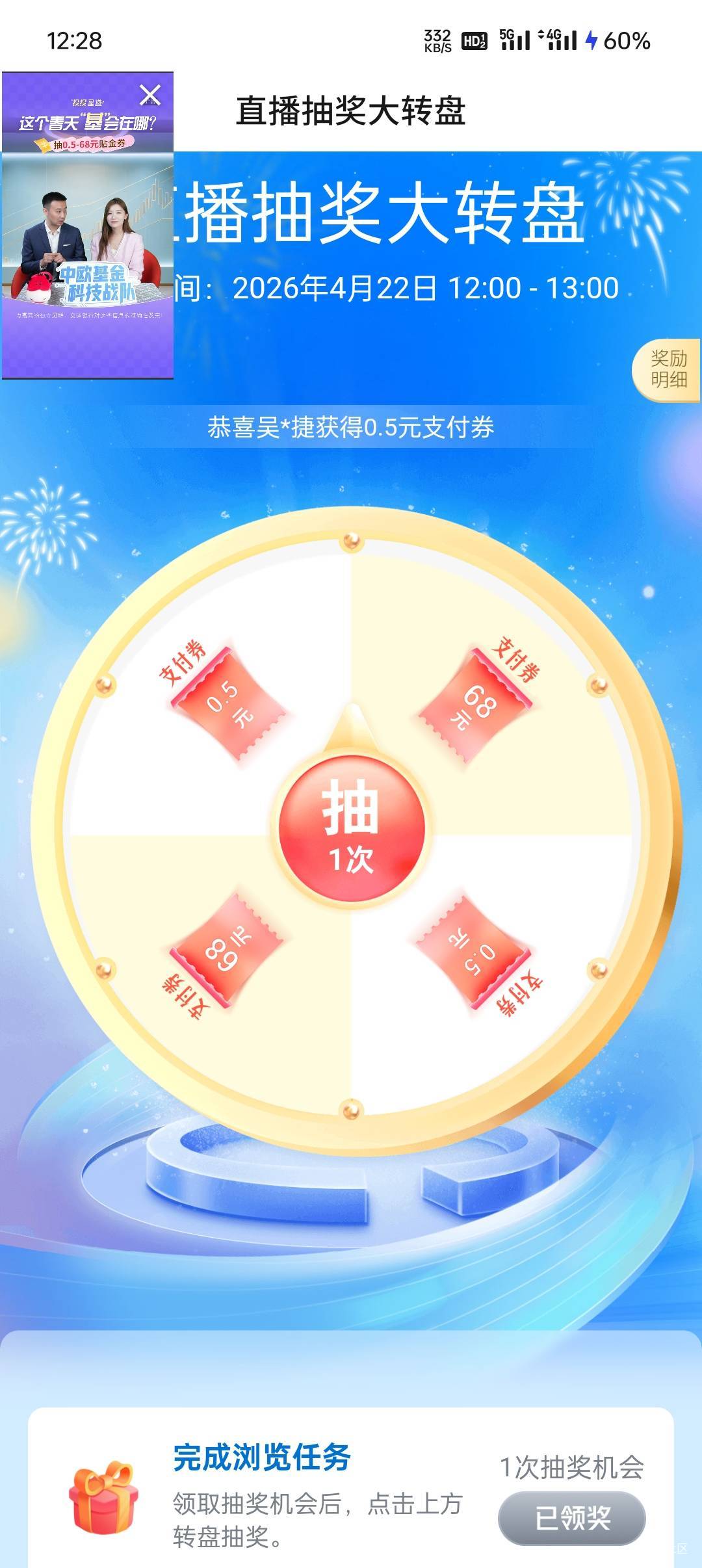 交通银行看直播抽奖大转盘活动