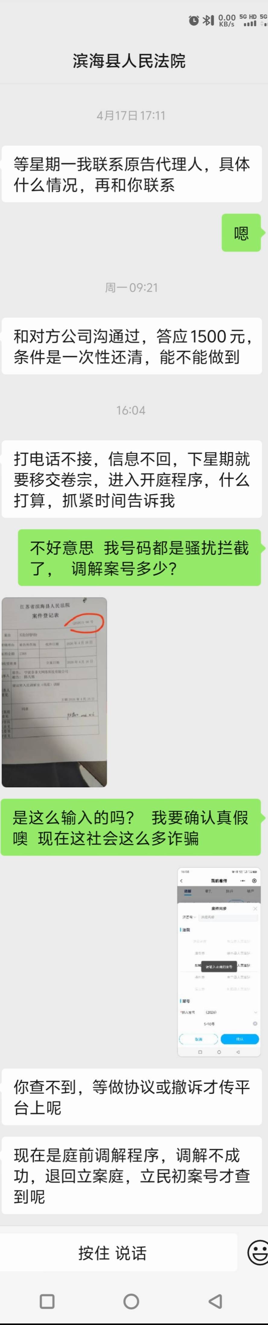 天赐锅锅灬 发表于 2026-04-22 16:24 刚打电话给我好牛b啊,他说话口音也确实是我县城人,他说现在是调解立案没有案号,我说那等有案号能查到再说,他直接把我拉黑了....