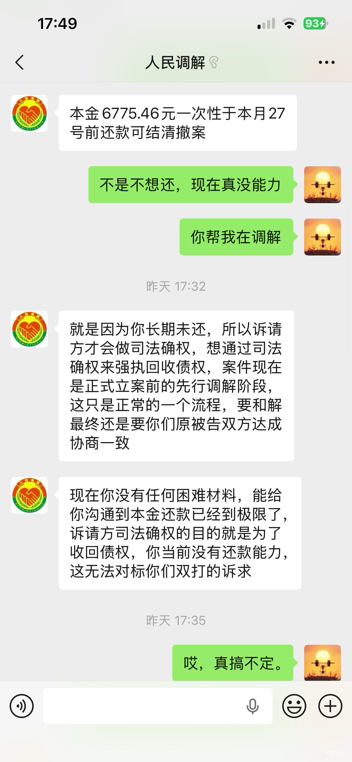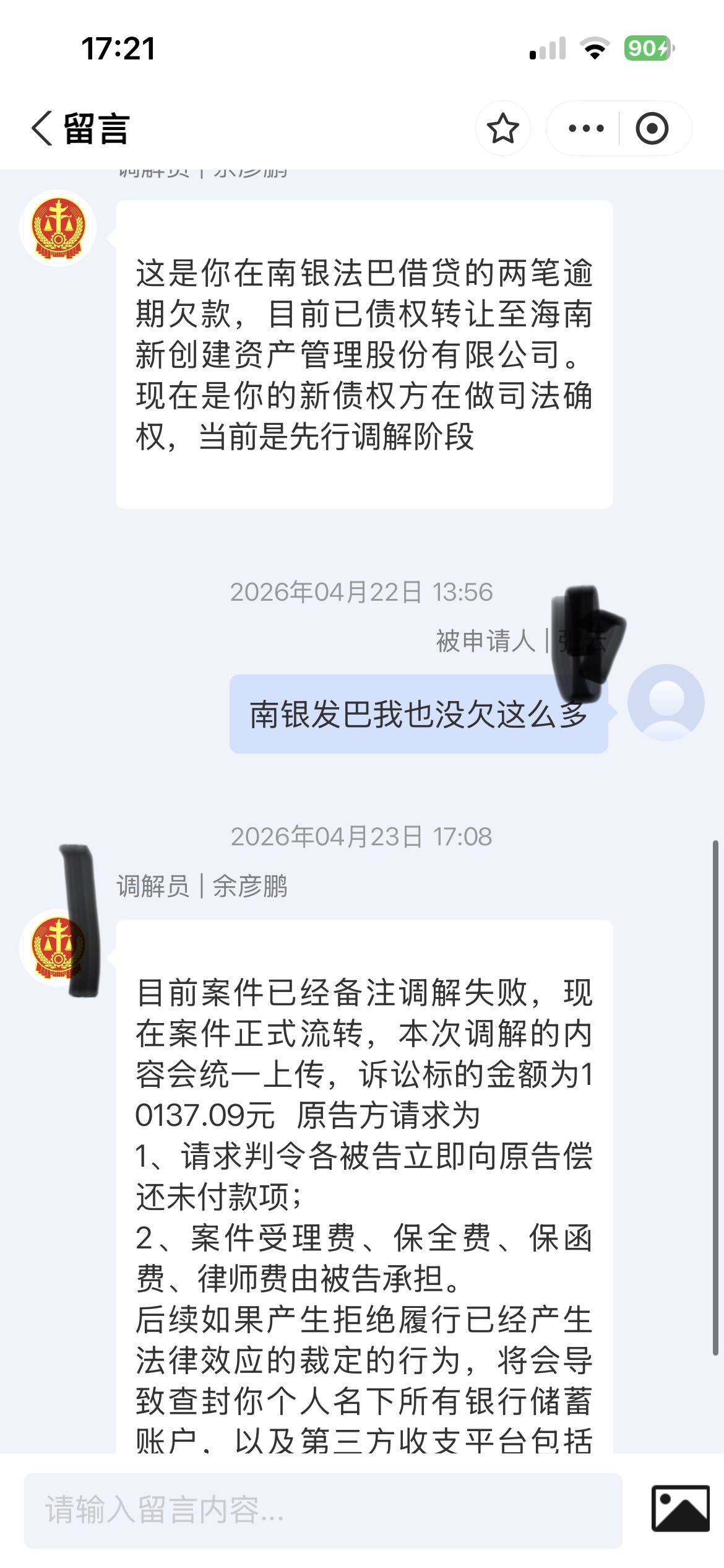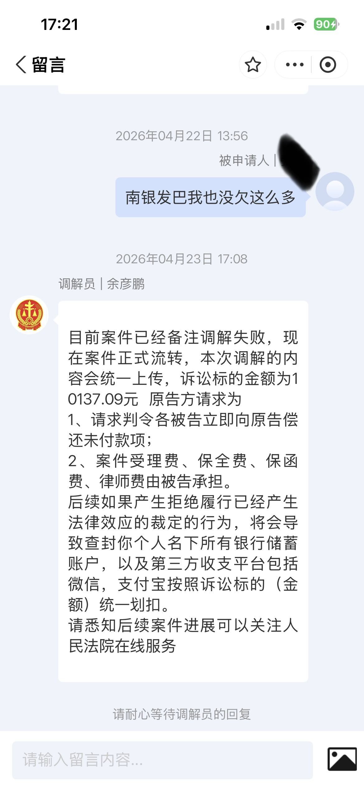 分期乐给我发过两次调节我直接说起诉我吧