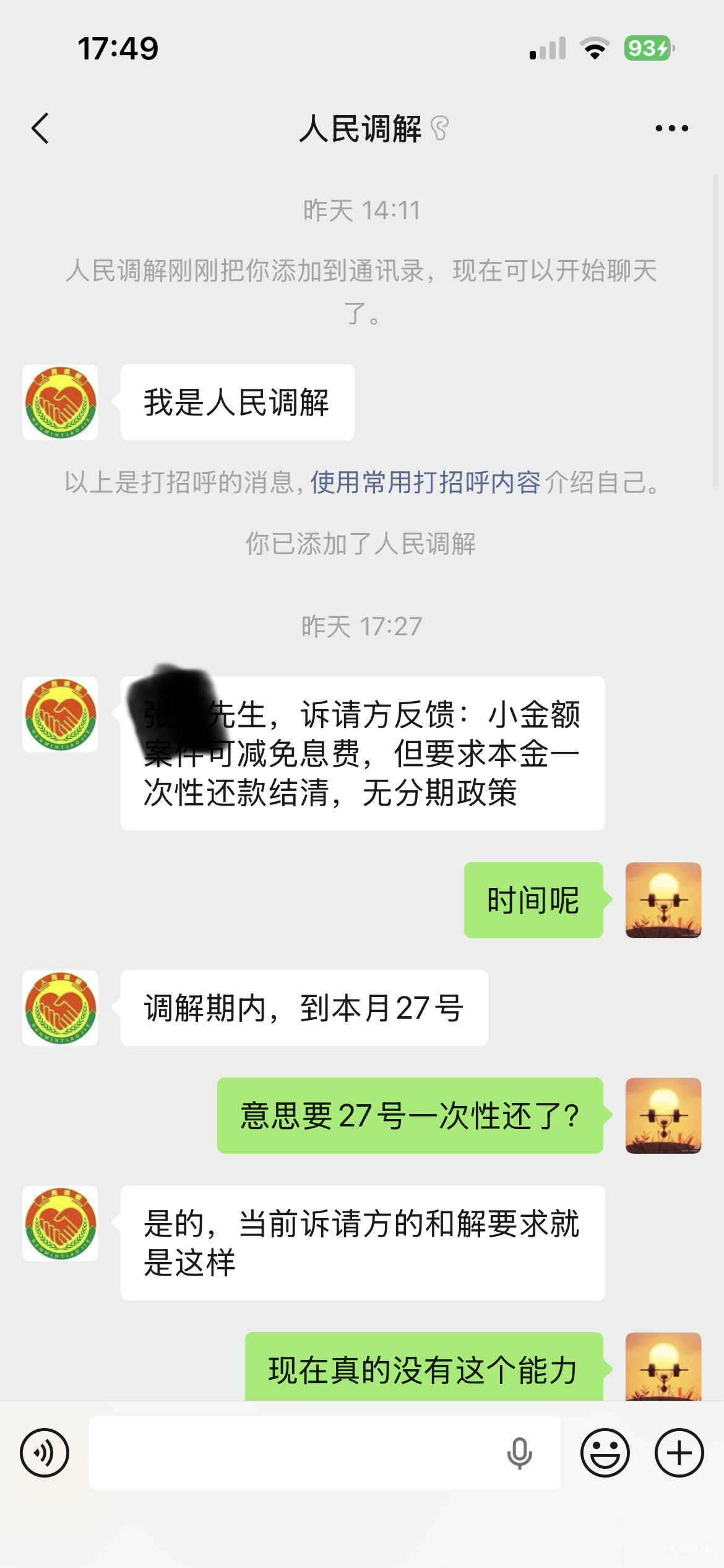 头回见法院调解加微信的