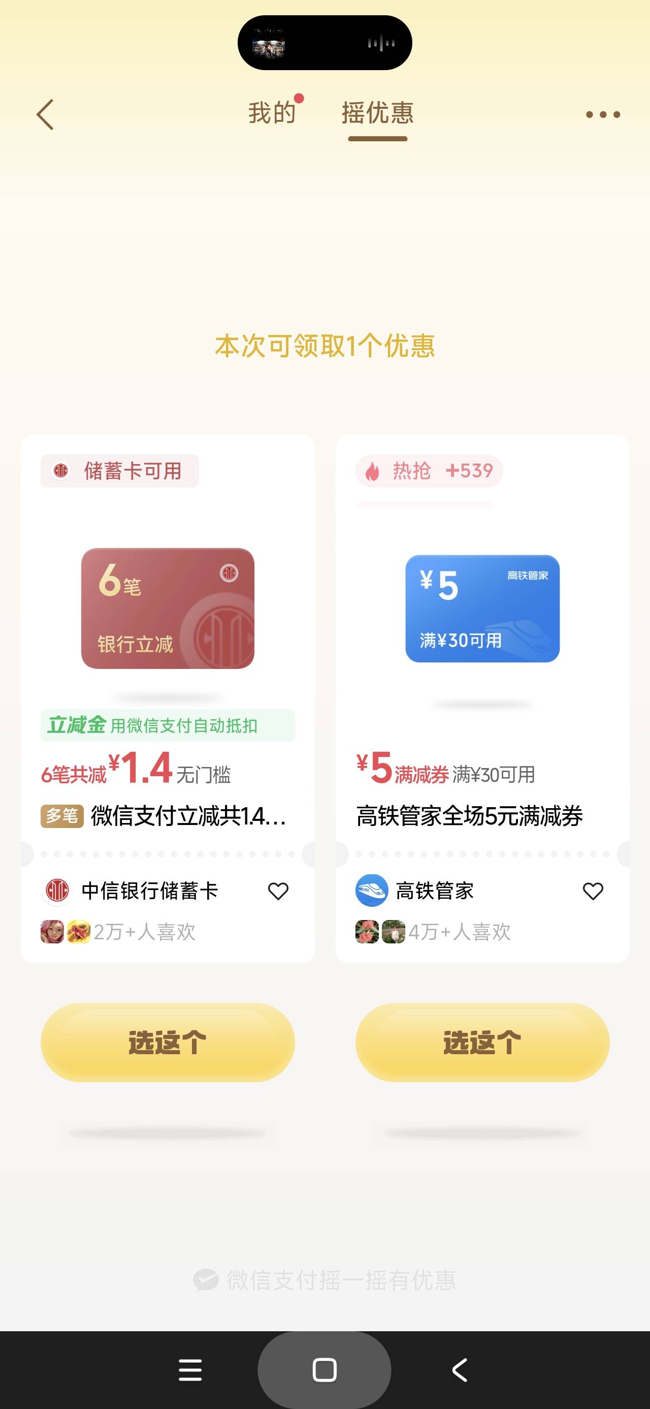 微信摇一摇中信银行微信支付多笔立减活动