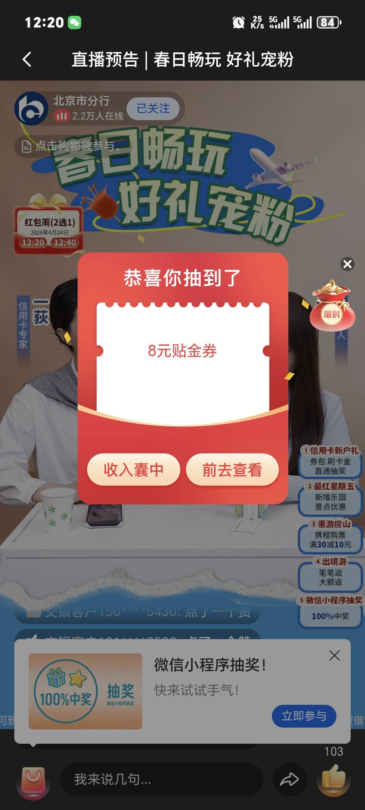 交通银行北京直播间红包雨抽奖活动
