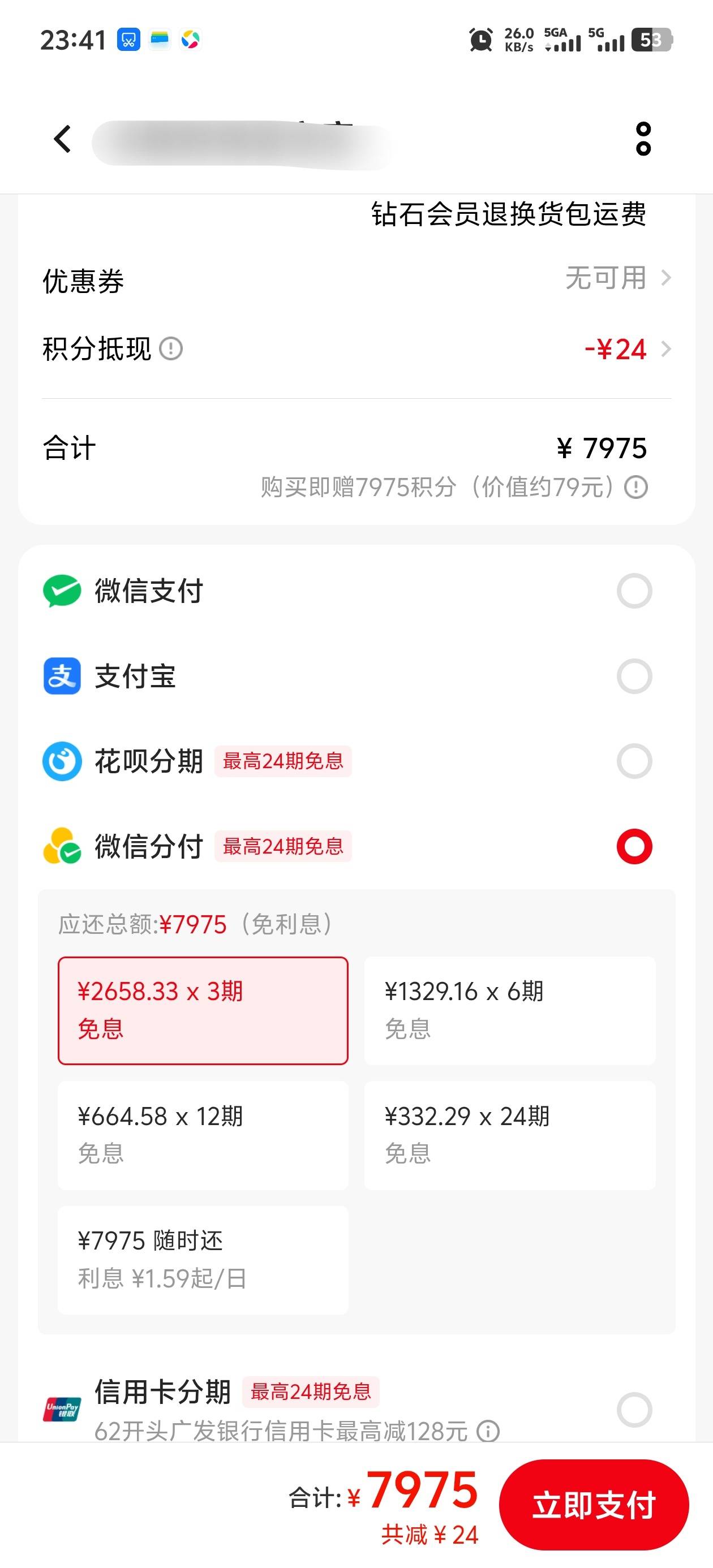 今天卡的??为啥我vivo商城没那个分付入口