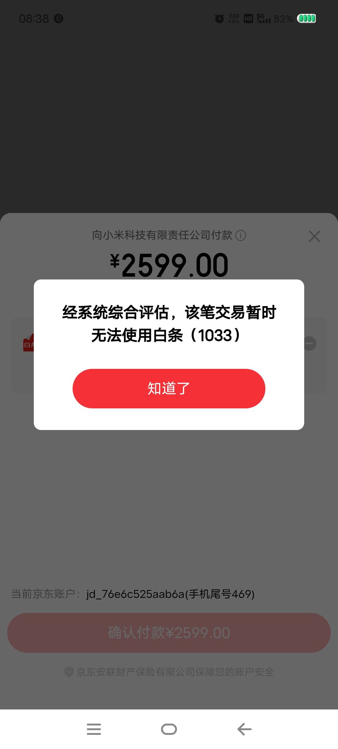 本来看到广场上面有人说小米商场可以白条支付  然后我去看了一下  我白条只有500额度的   结果下单的时候弹出有4000多   我试了一下   没想到成功了[