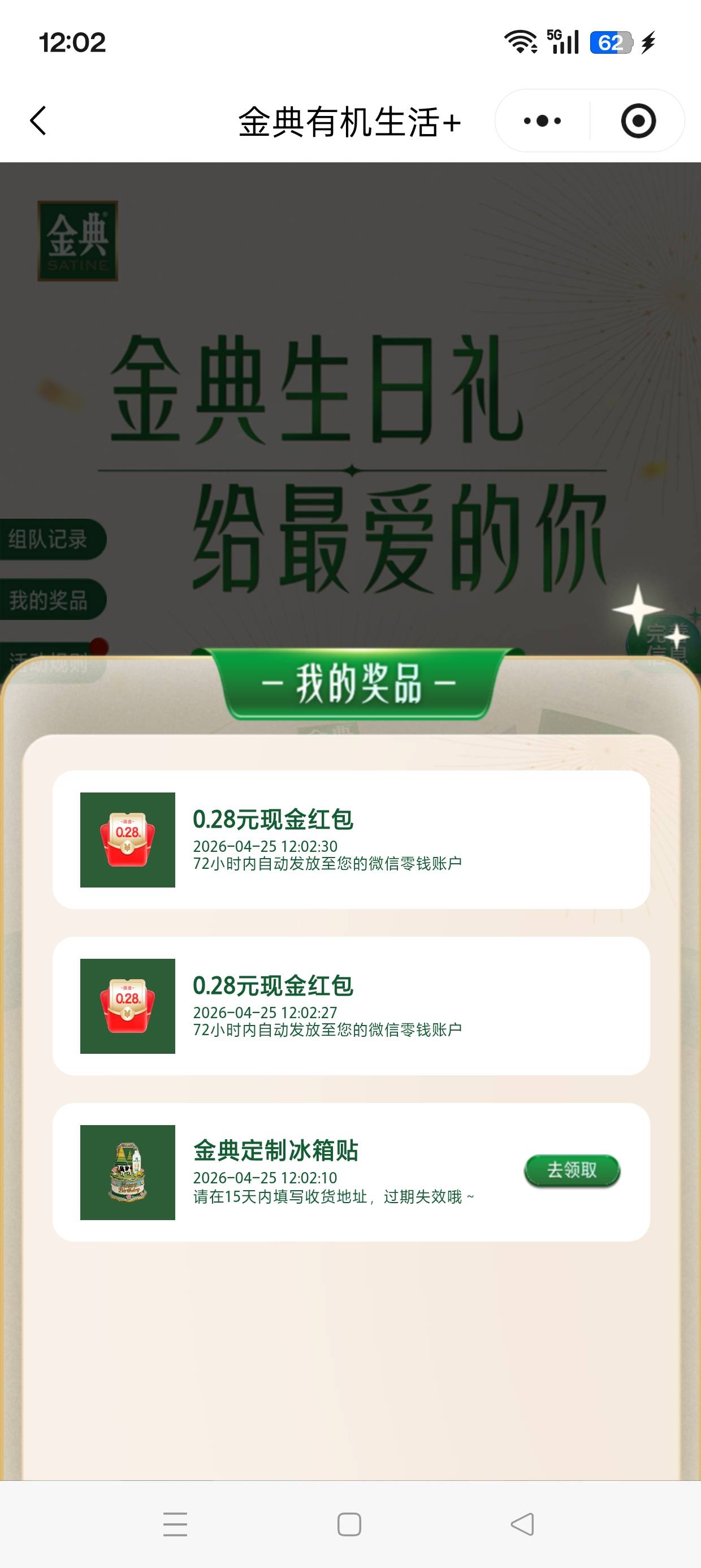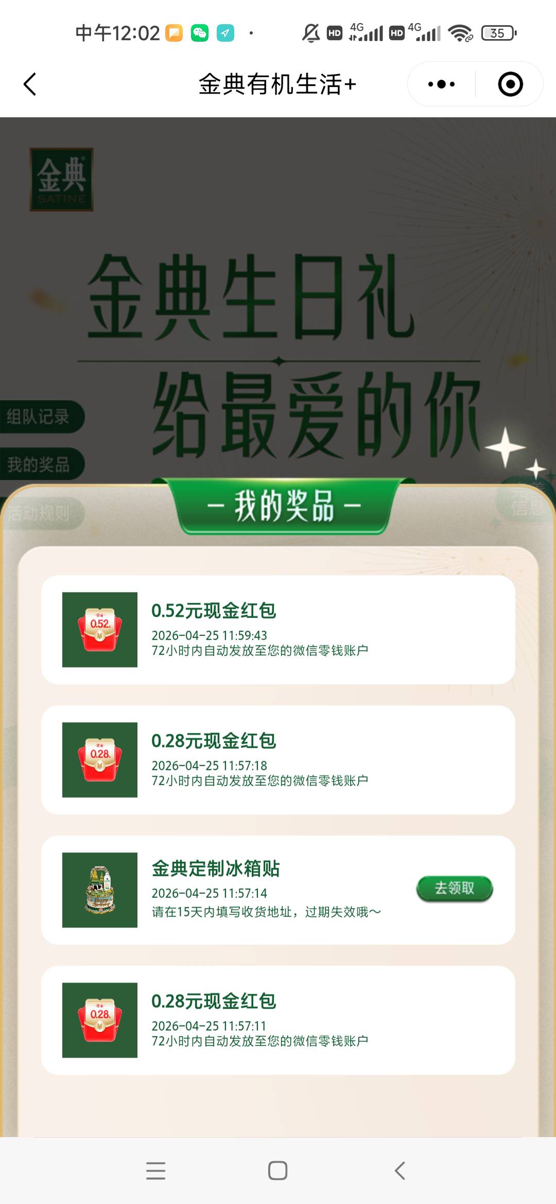 撸毛大玩家 发表于 2026-04-25 11:57 入口金典有机生活+ 生日礼要完善信息把生日改成今天3次抽奖,大概率5
