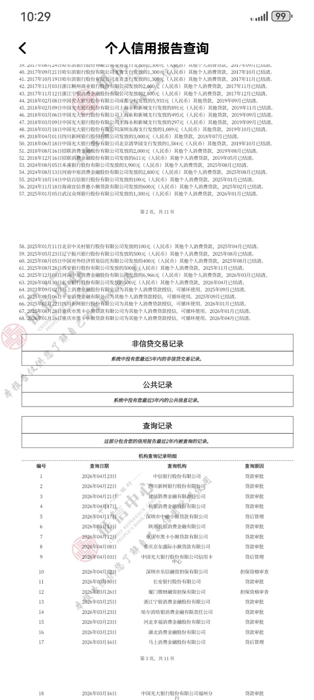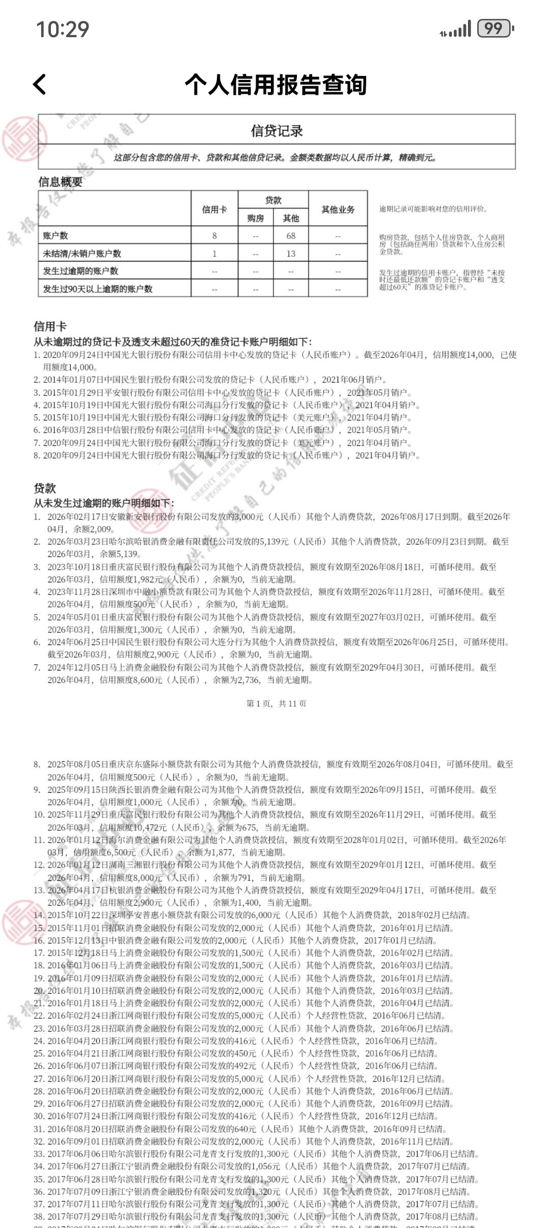 现在申请什么都上征信我擦去年12月查征信11页今天干到33