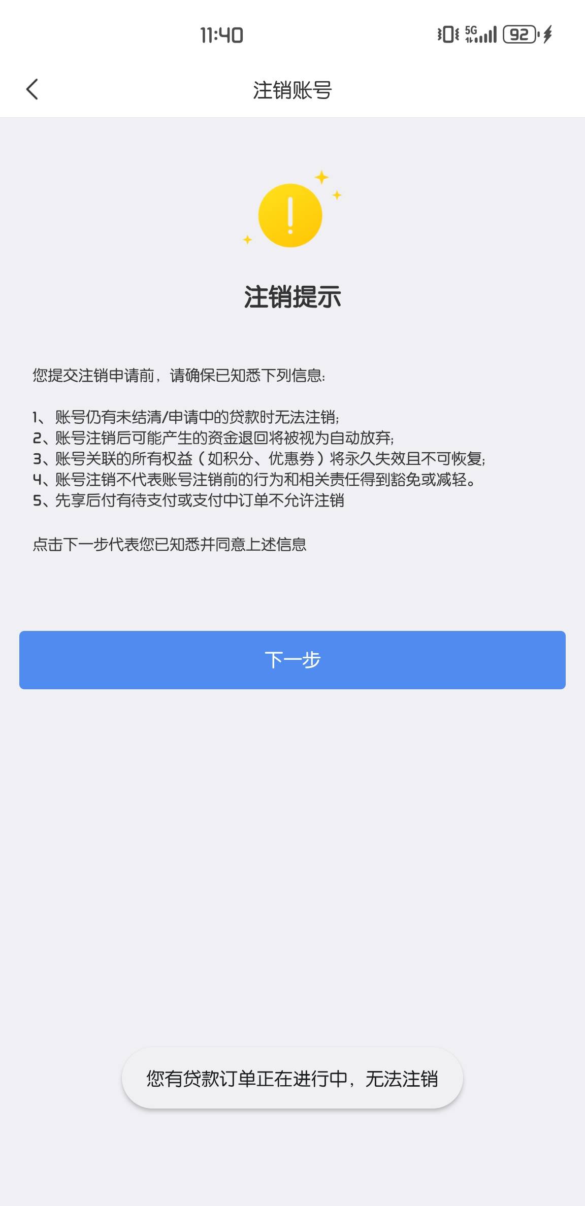 我新号也是,说我有2笔一个8000一个9000在审核,关键我没申请,让客服帮我取消了,1个工作日后可以注销