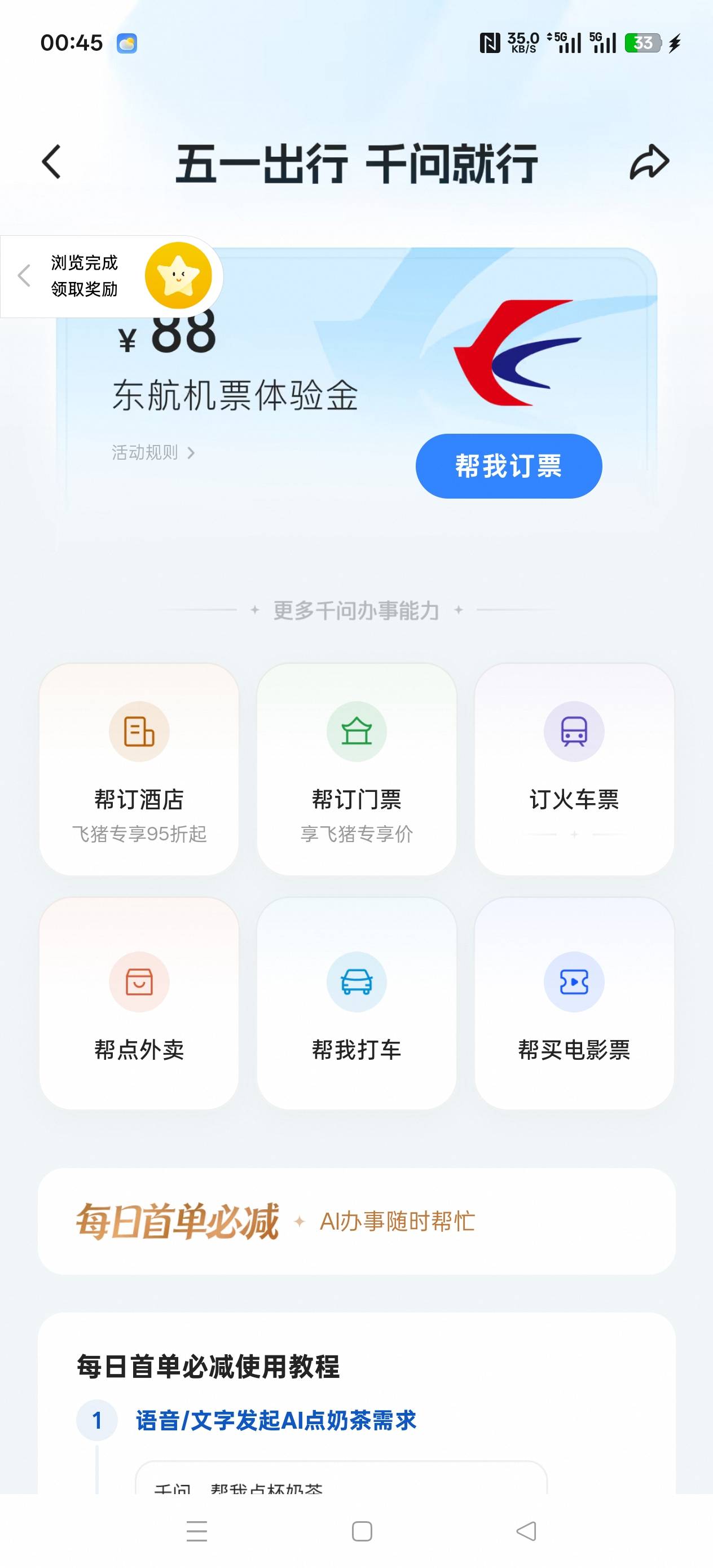 千问五一出行东航机票体验金活动