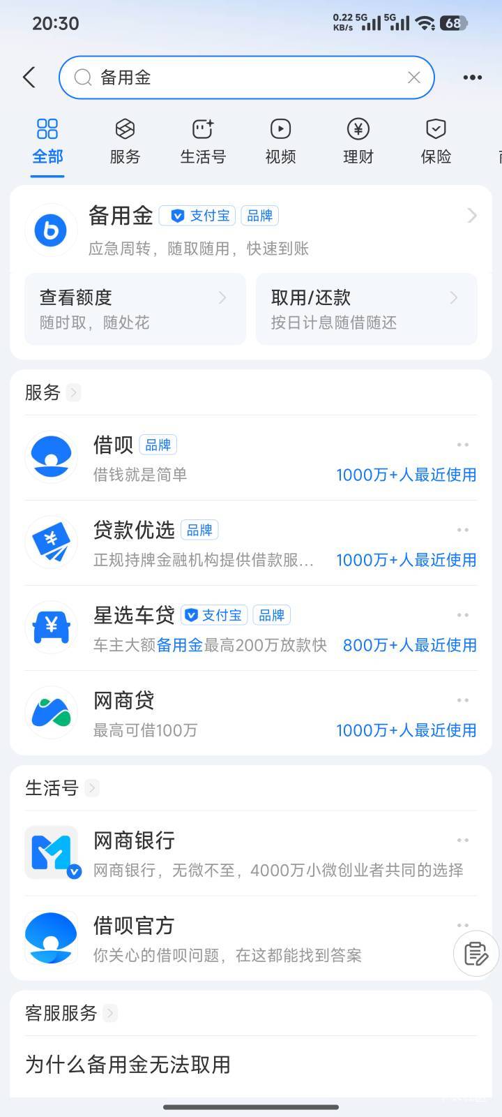 我花呗关了,就没有备用金了