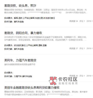 综合各类投诉来看,主要投诉内容为以下几种类型:一是,实际贷款与协议贷款不符,实际贷款总额明显高出美利车金融告知消费者的应还贷款总额,高出金额在几千至上万元不等;二是,未出具相关纸质合同和票据,联系客服无回应;三是,巧设服务费、GPS费、保险费等多项费用;四是,遭到暴力催收、恐吓、骚扰。
